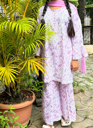 Introducing our Gulnaar Purple Printed - Cotton Chikankari Kidswear Set, from the Nanhe Farishte Collection.