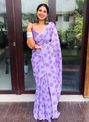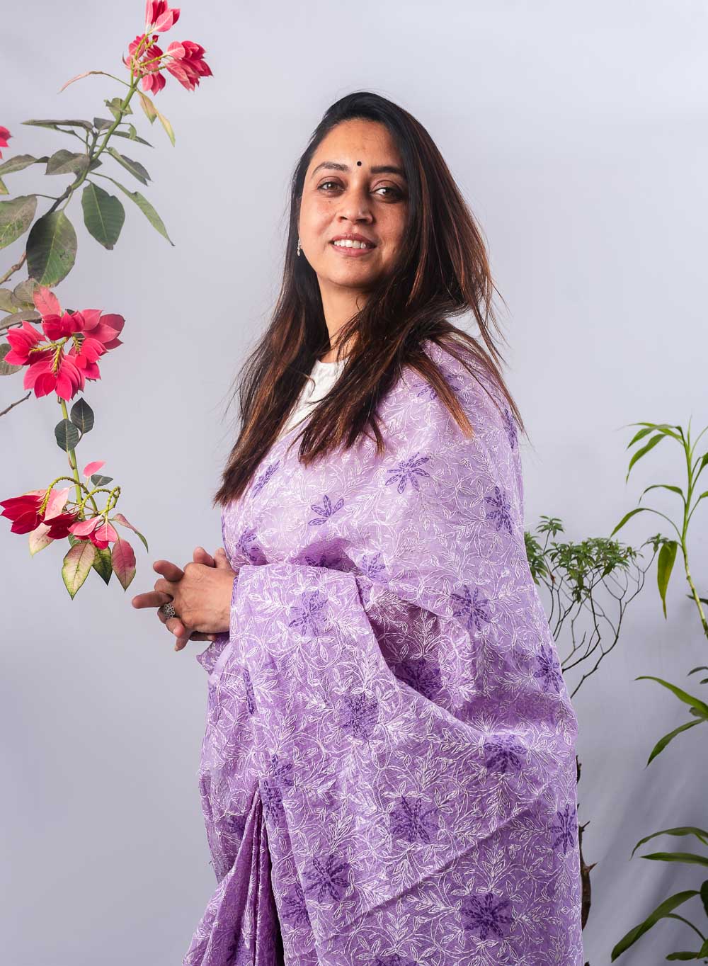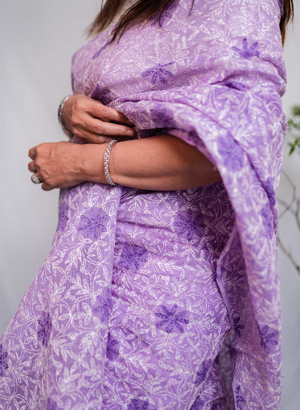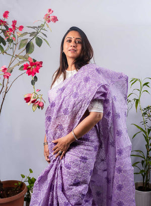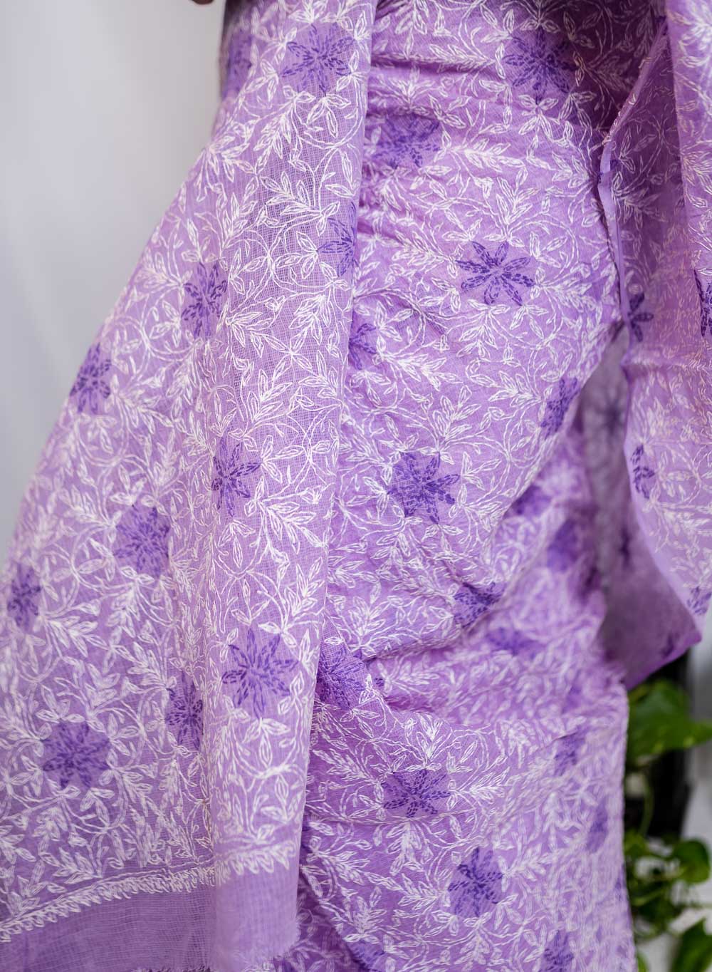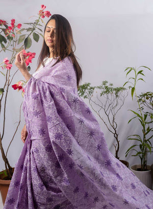 Guncha Lavender - Dual Thread Aks Cotton Tepchi Chikankari Saree