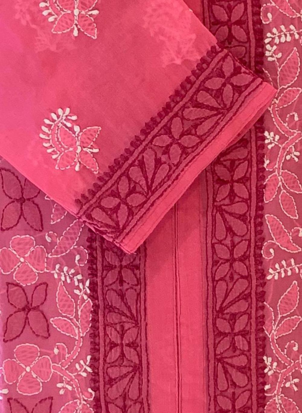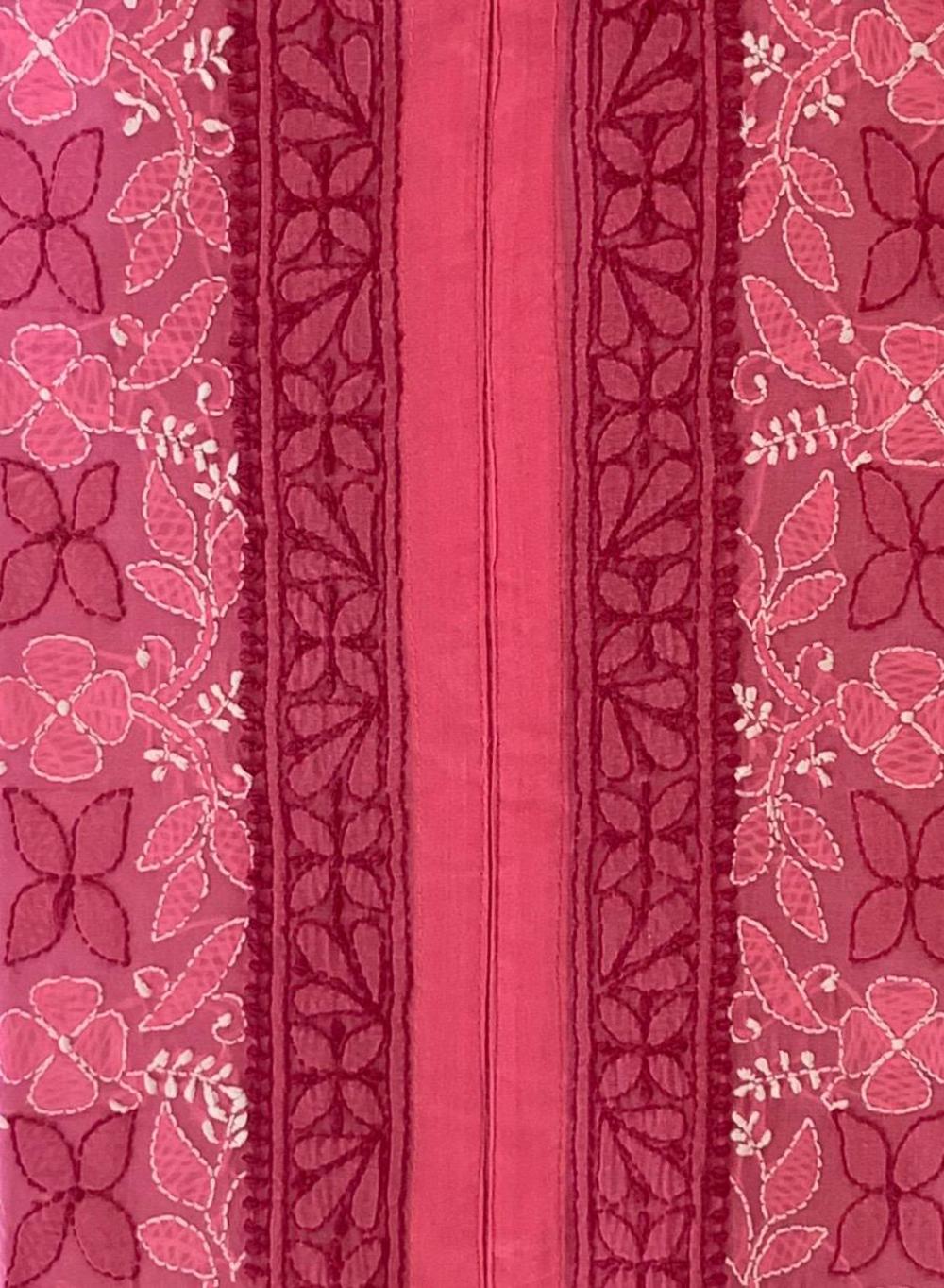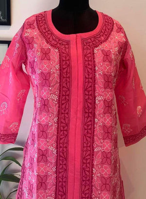 Our beautiful Hot Pink Cotton Terry Voile Kurta, has been hand embroidered with white and dark pink motifs, in twisted cotton thread