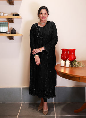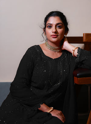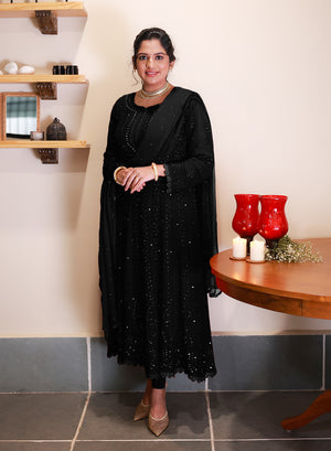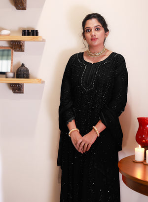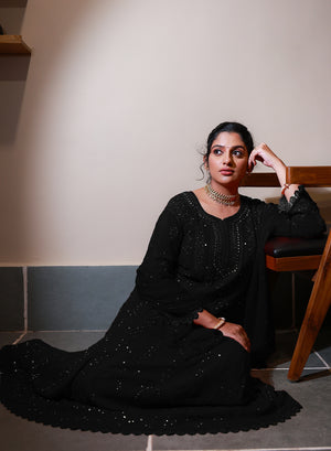 Ibadat Black - Viscose Anarkali & Dupatta Nargis Chikankari Set