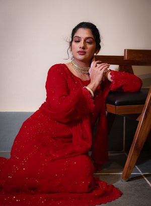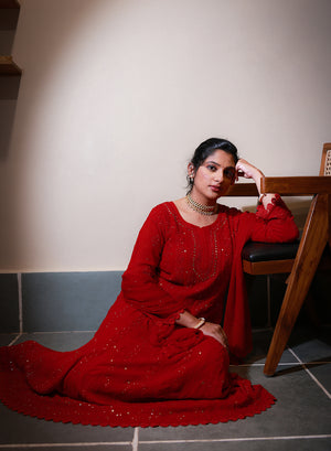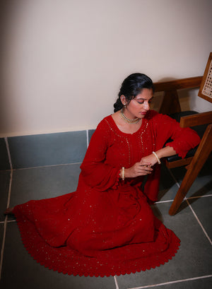 Ibadat Maroon - Viscose Anarkali & Dupatta Nargis Chikankari Set