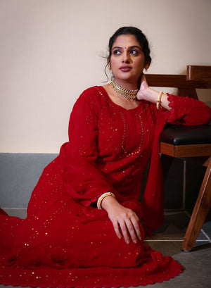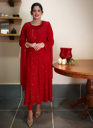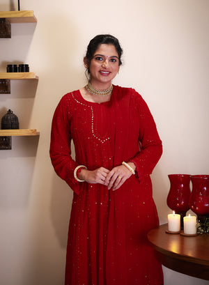 Ibadat - Maroon Viscose Anarkali And Dupatta Set with Mukaish Work
