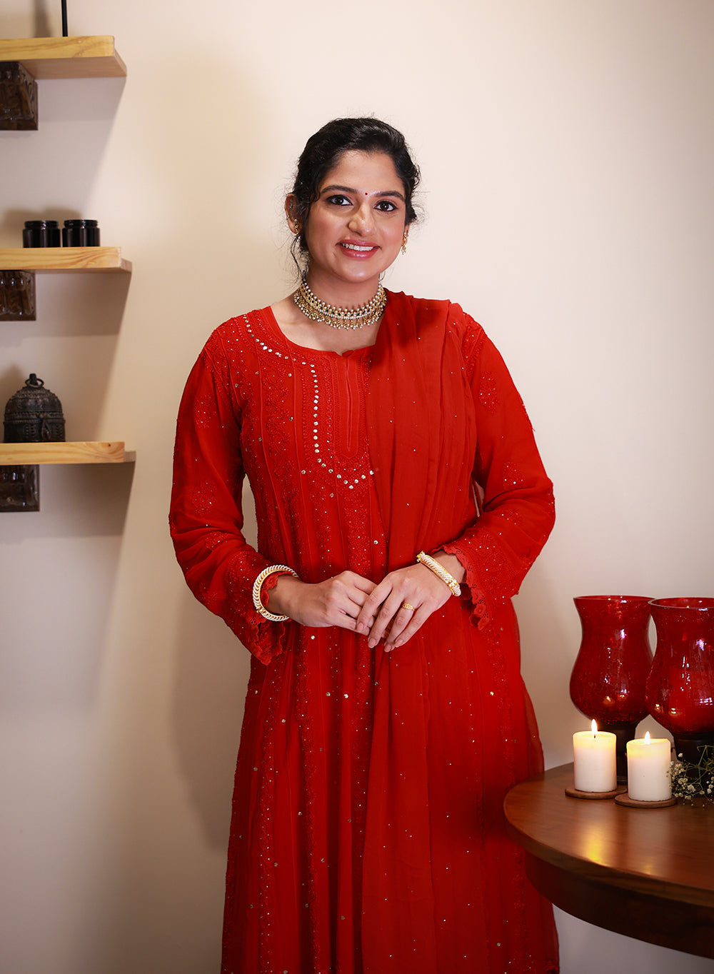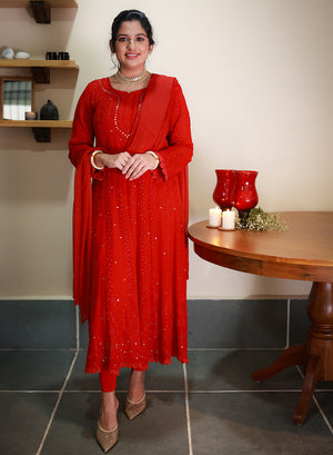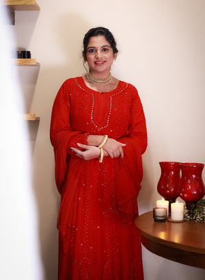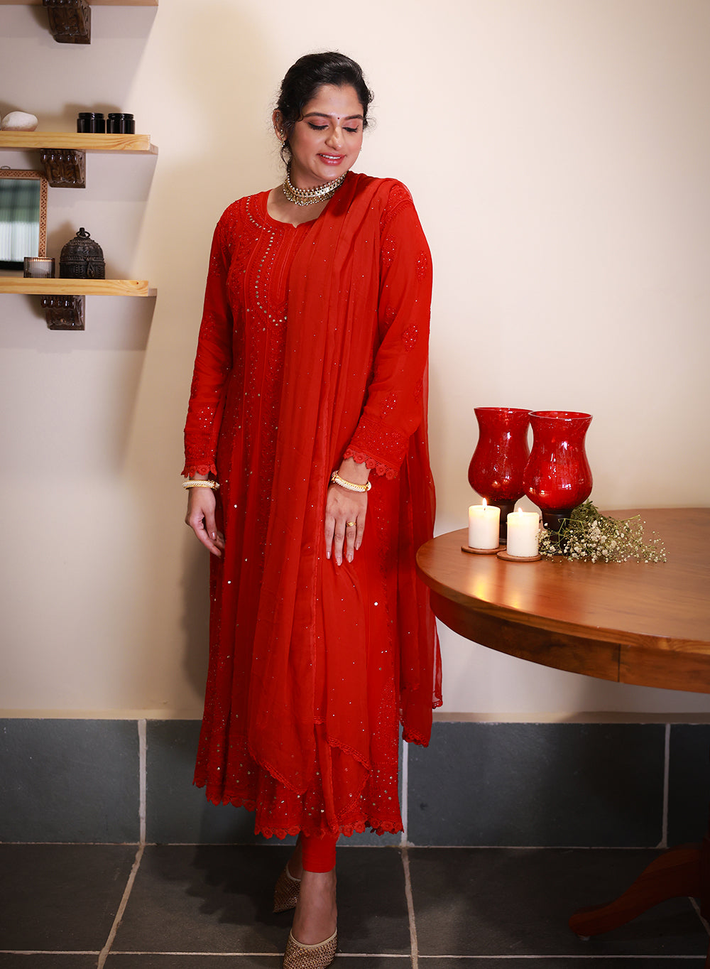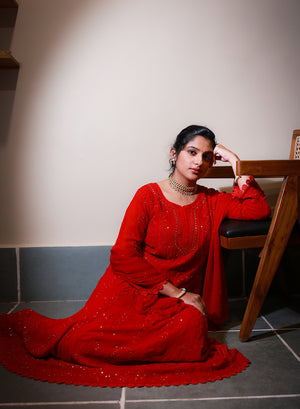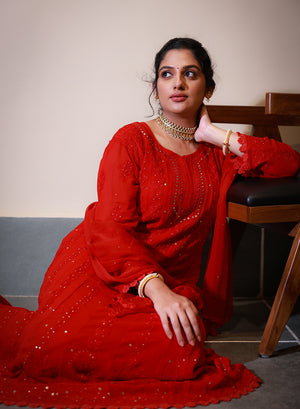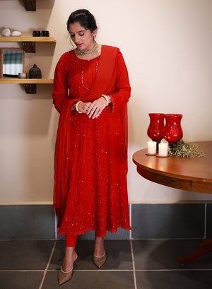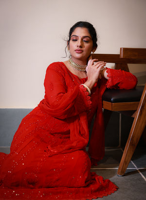Ibadat Red - Viscose Anarkali & Dupatta Nargis Chikankari Set