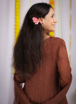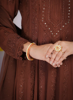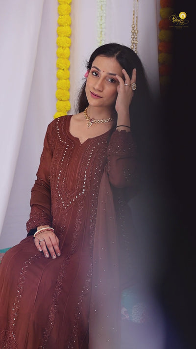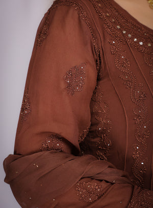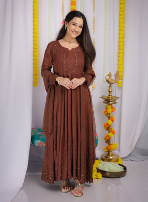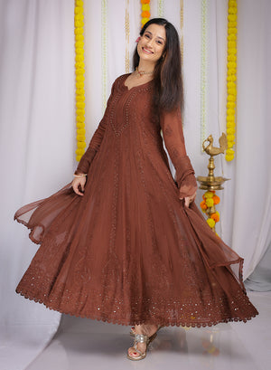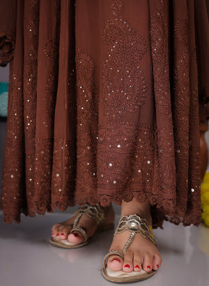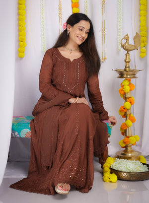 Ibadat Coffee - Viscose Anarkali & Dupatta Nargis Chikankari Set