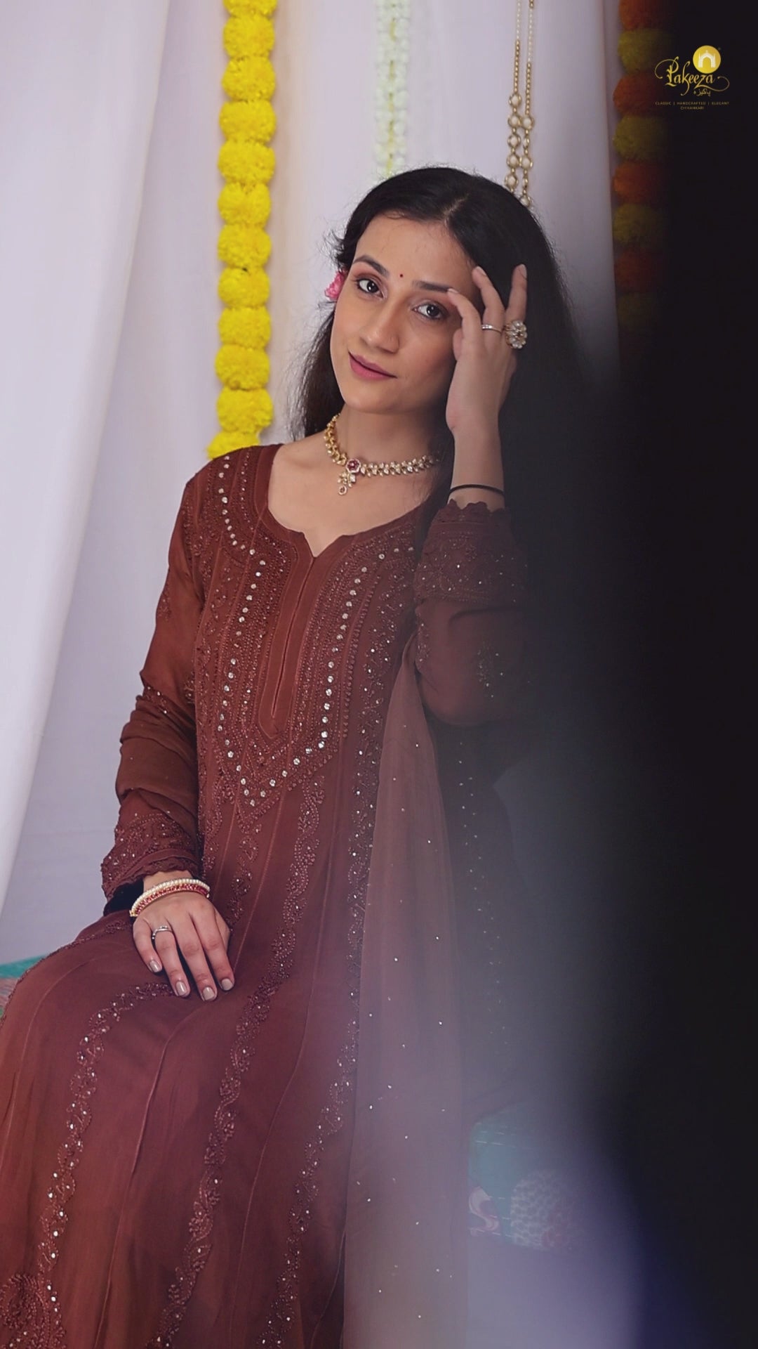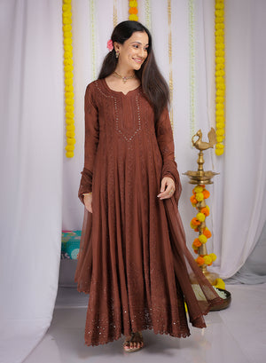 Ibadat - Coffee Viscose Anarkali And Dupatta Set with Mukaish Work