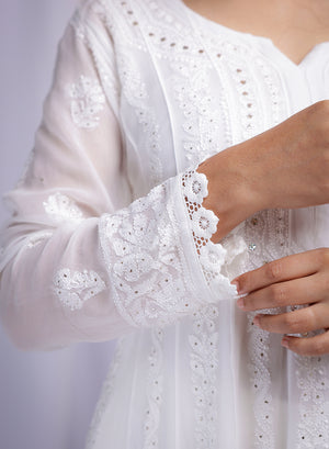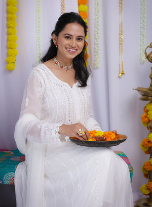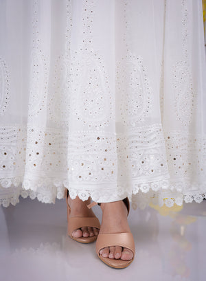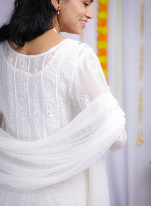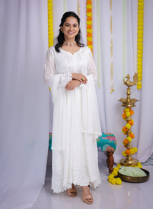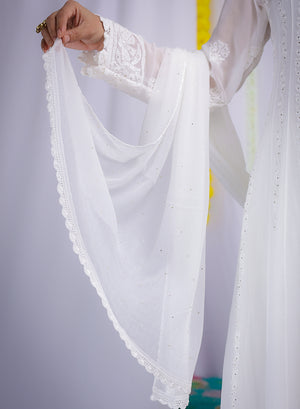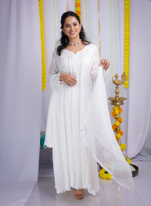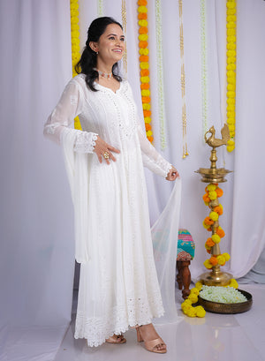 Ibadat White - Viscose Anarkali & Dupatta Nargis Chikankari Set