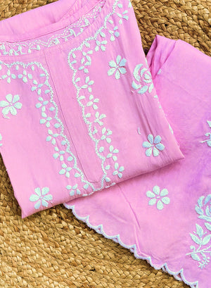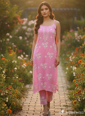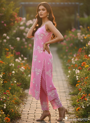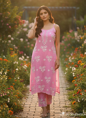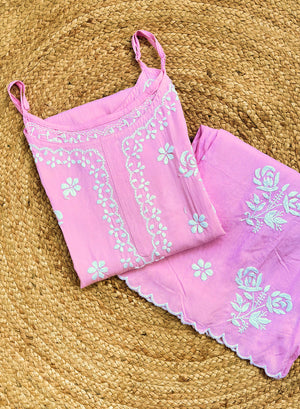 Kala Pink - Nargis Chikankari Rayon Noodle Strap Kurta & Palazzo Set