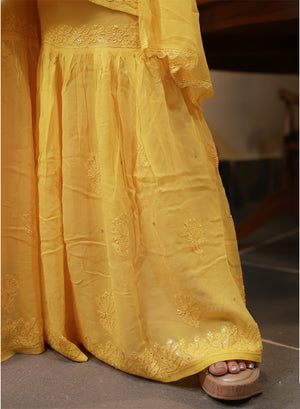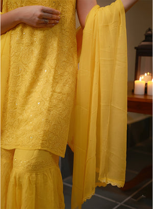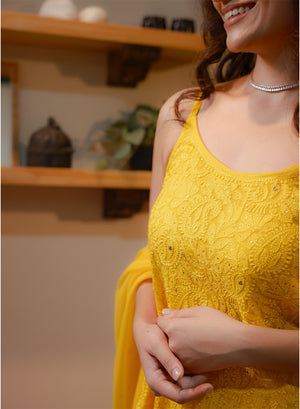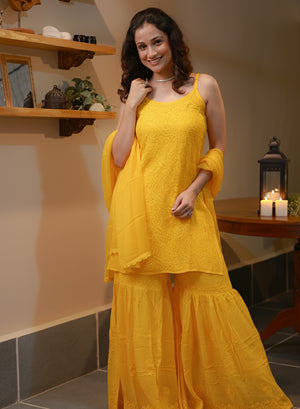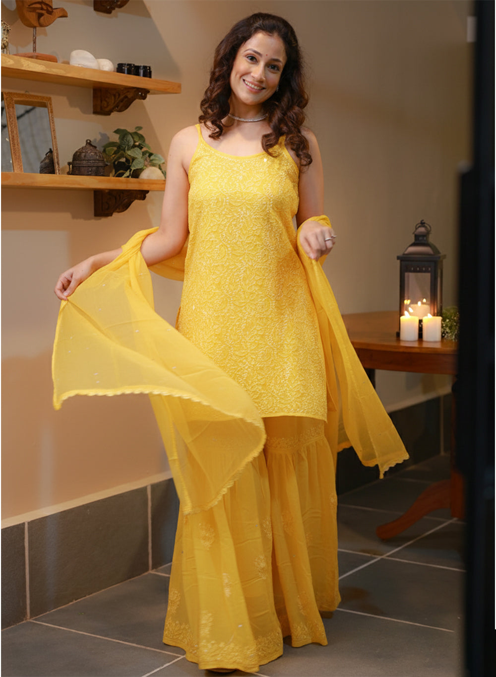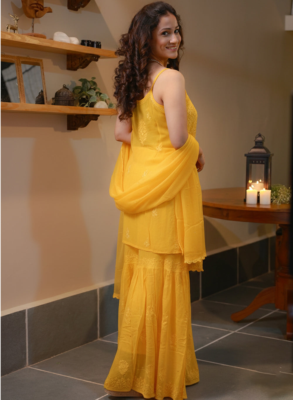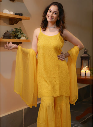 Kanak Mango - Nargis Viscose Noodle Strap Chikankari Kurta & Gharara Set