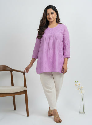 Lavender - Resham Thread Gulshan Chikankari Short Top