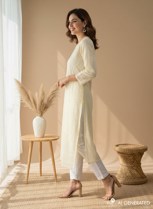 Our beautiful Lemon Yellow - Bahaar Cotton Terry Voile Chikankari Kurta, has been hand embroidered with twisted cotton thread.
