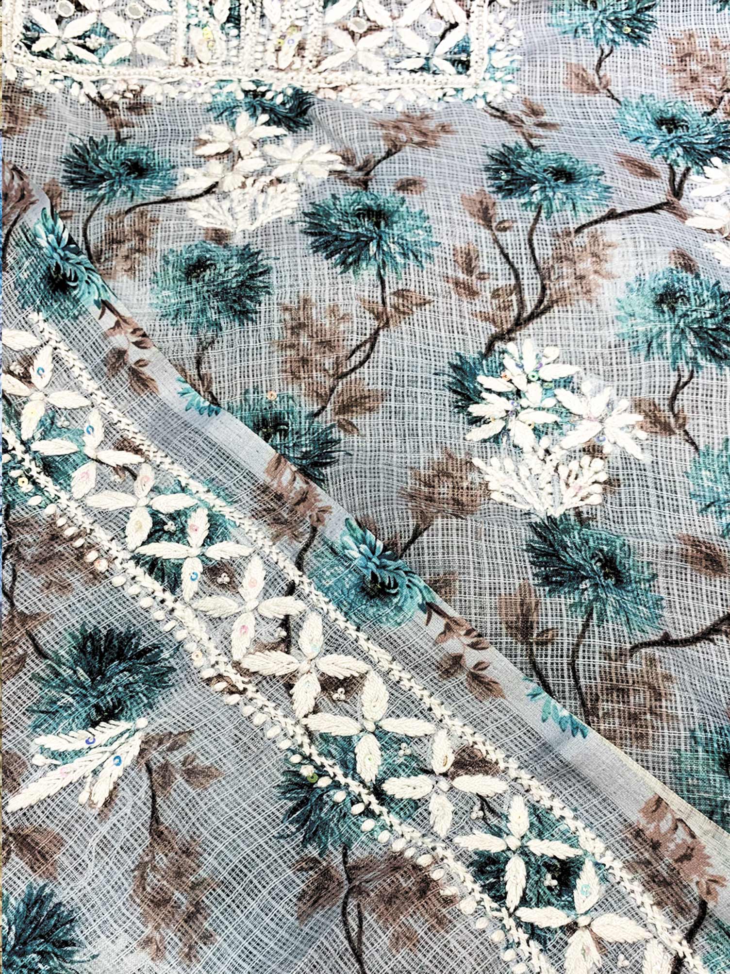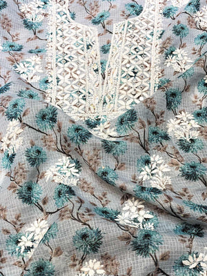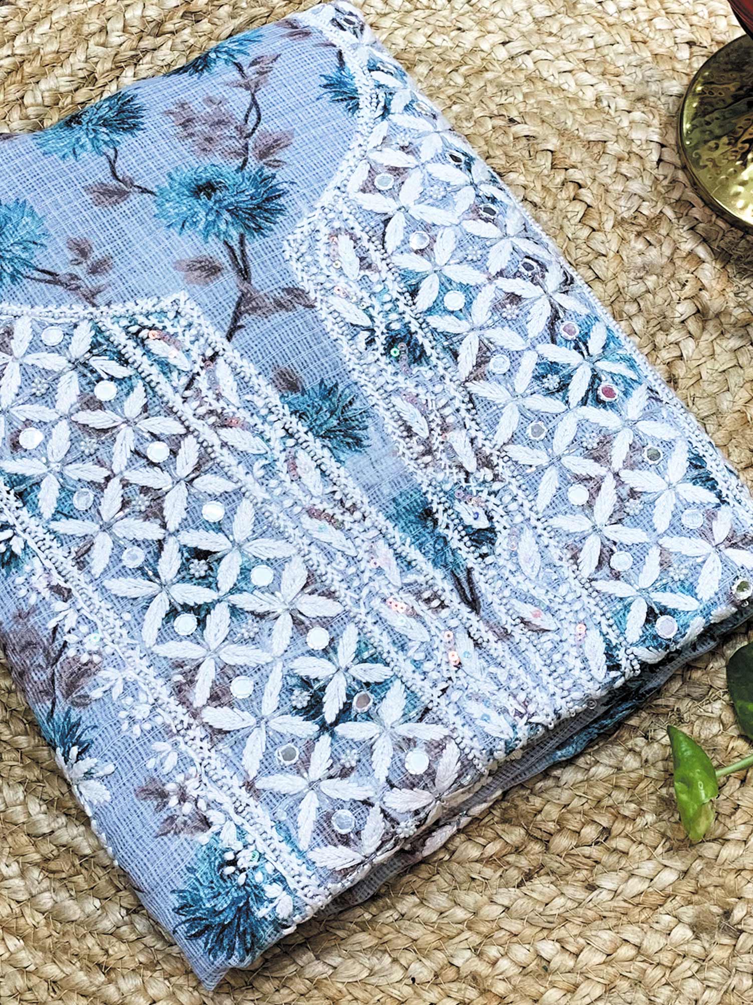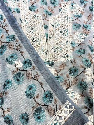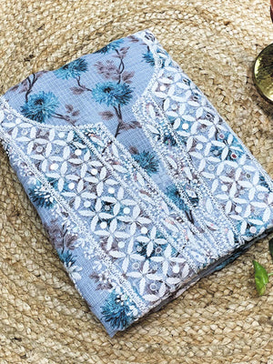 Light Blue - Nayaab Katdana Kota Printed Chikankari Full Dress Set