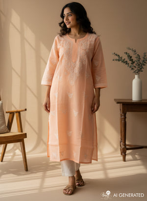 Our beautiful Light Orange - Bahaar Cotton Terry Voile Chikankari Kurta, has been hand embroidered with twisted cotton thread.