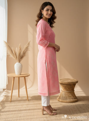 Our beautiful Peach Pink - Bahaar Cotton Terry Voile Chikankari Kurta, has been hand embroidered with twisted cotton thread.