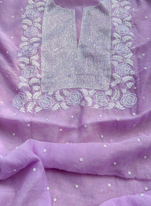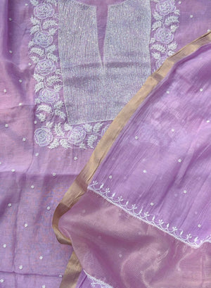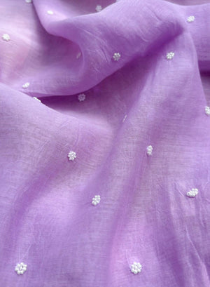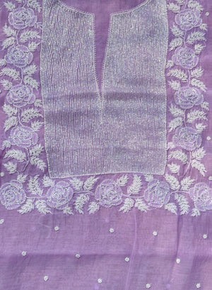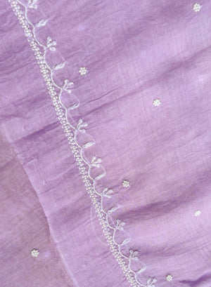 Lilac - Nayaab Mul Chanderi Chikankari Dress Material With Moti & Katdana Work