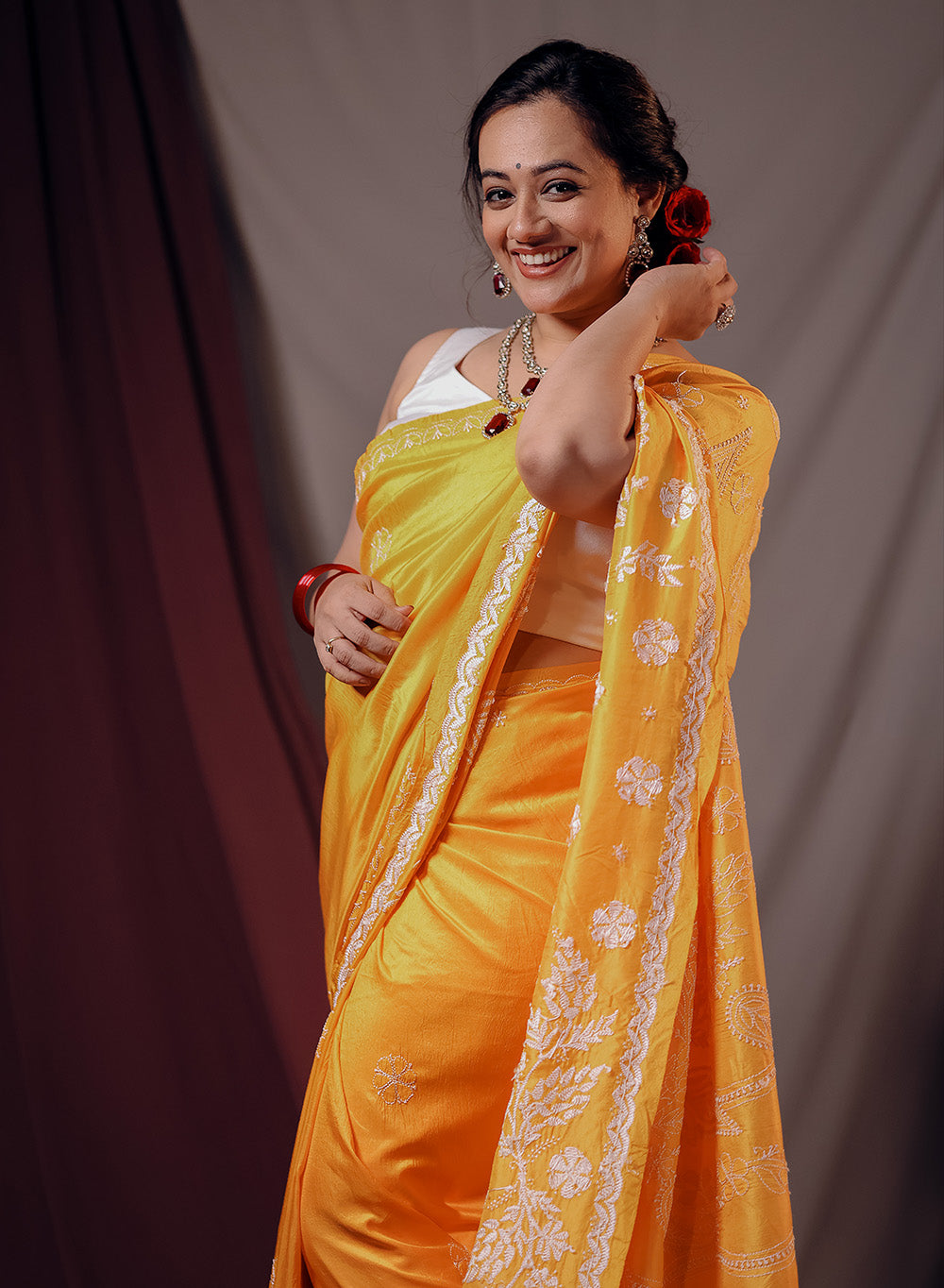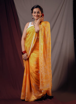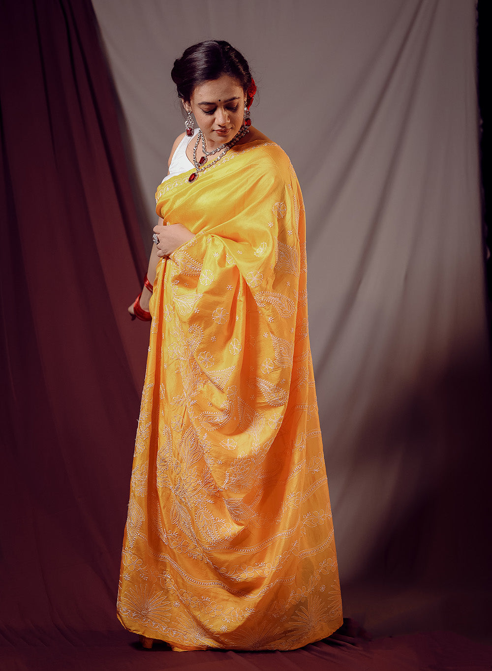 Mango - Pure Silk Aks Resham Chikankari Saree
