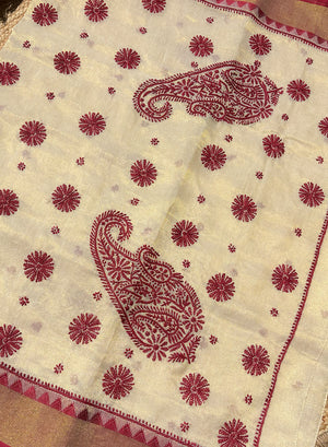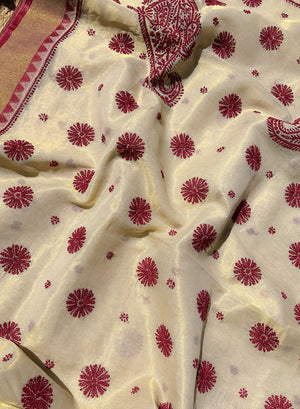 Maroon Dhoop Chaav - Aks Super Net Chikankari Saree