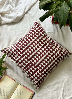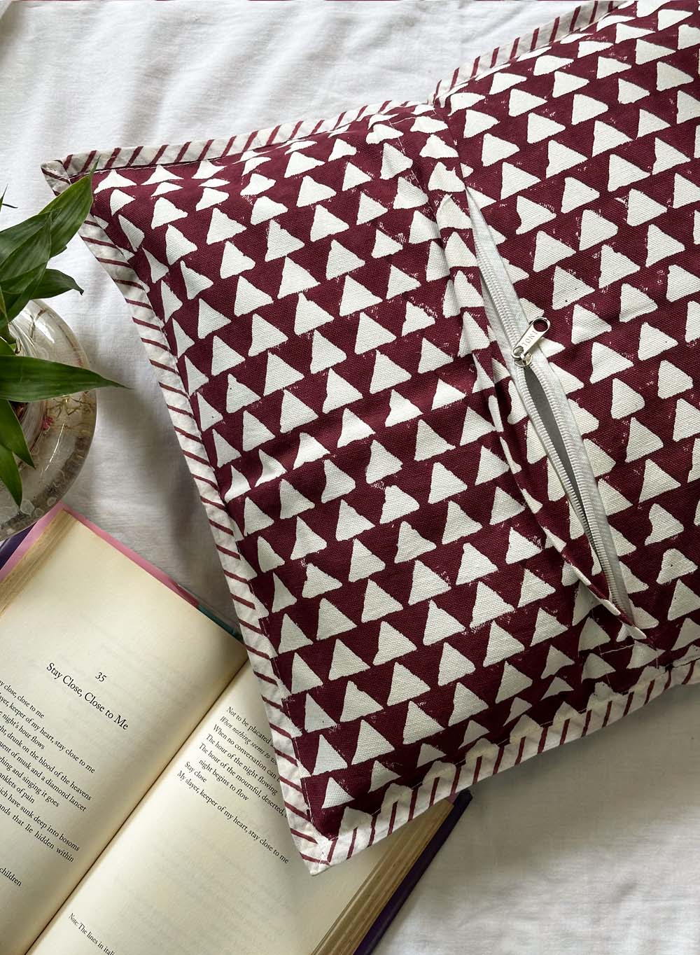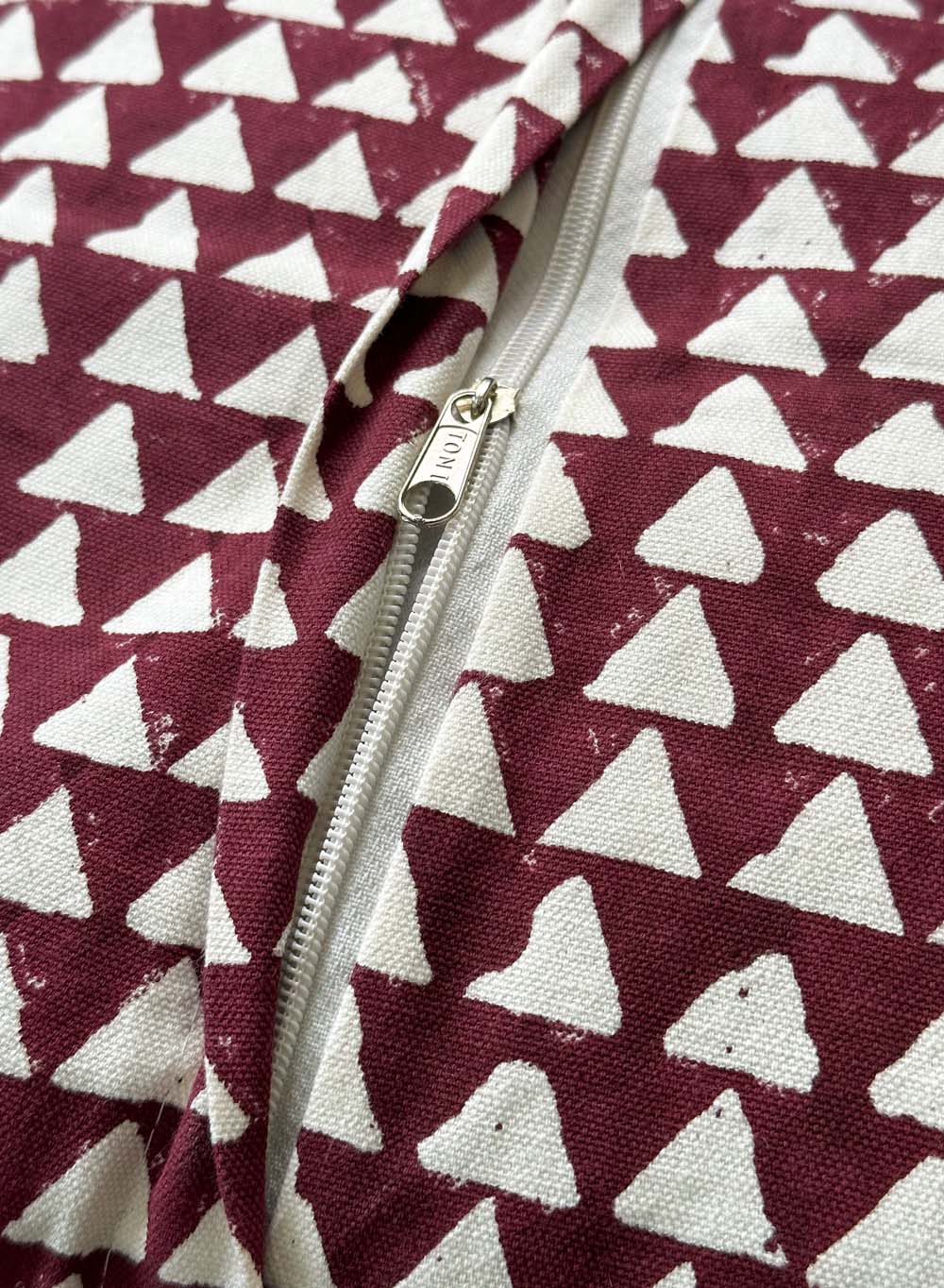 Maroon Triangle - Gharonda Cotton Cushion Cover