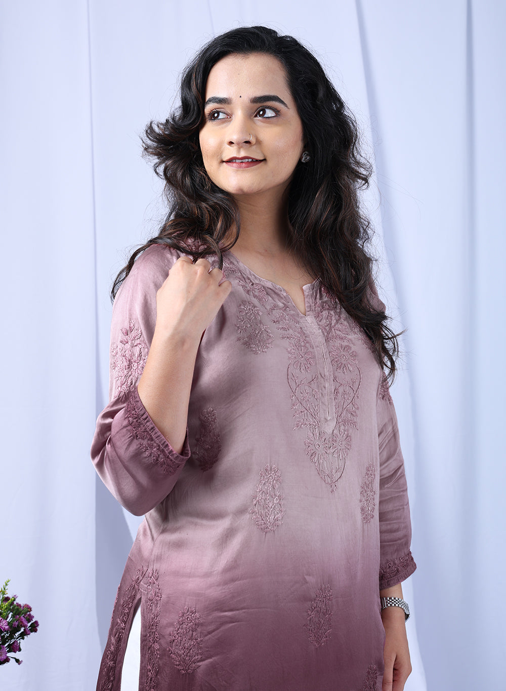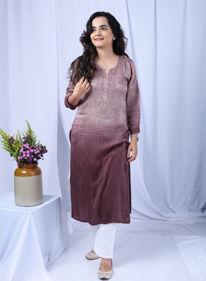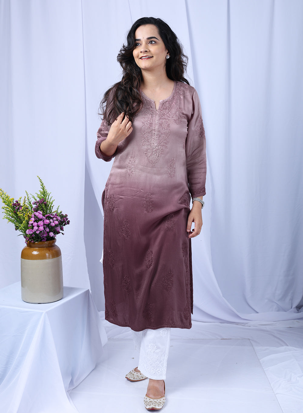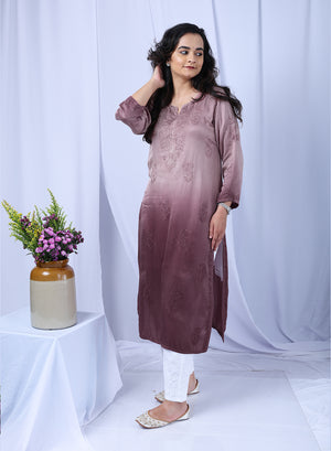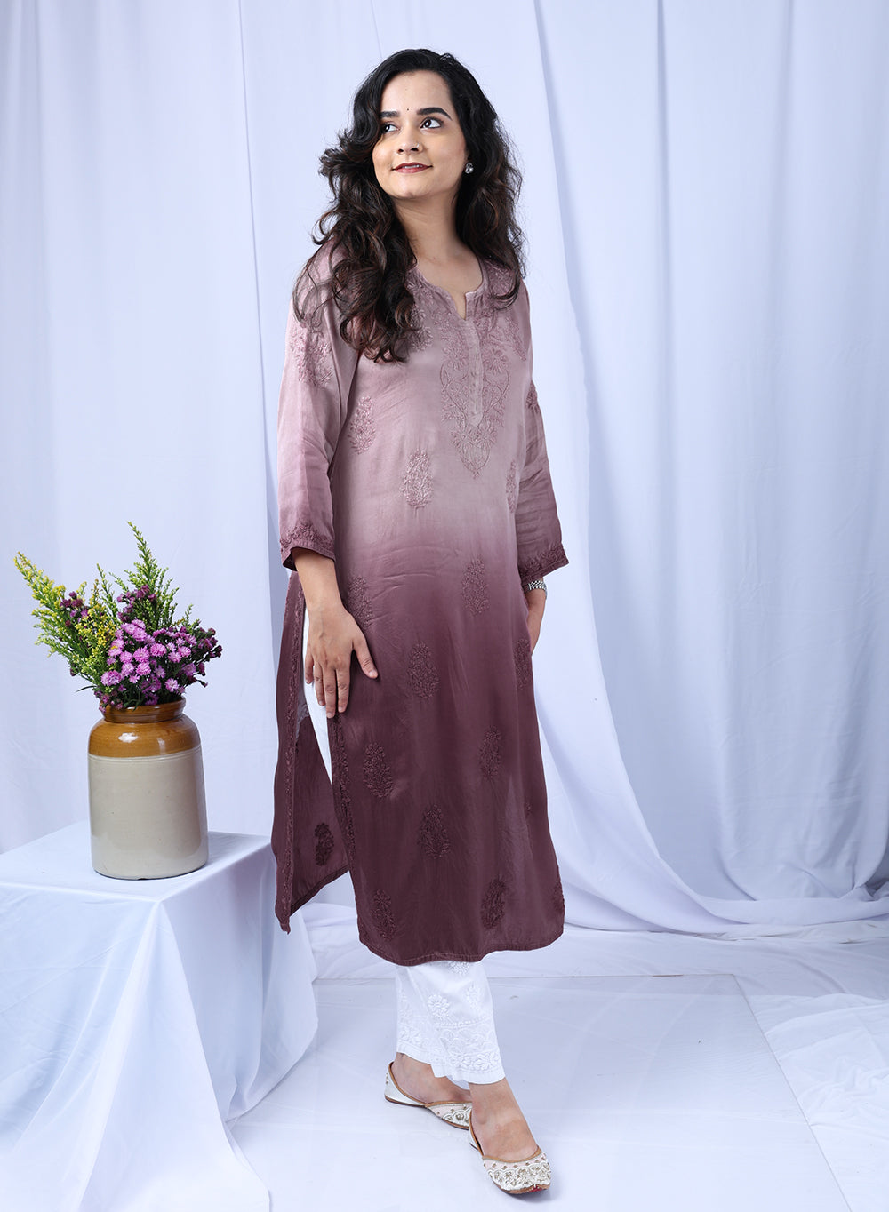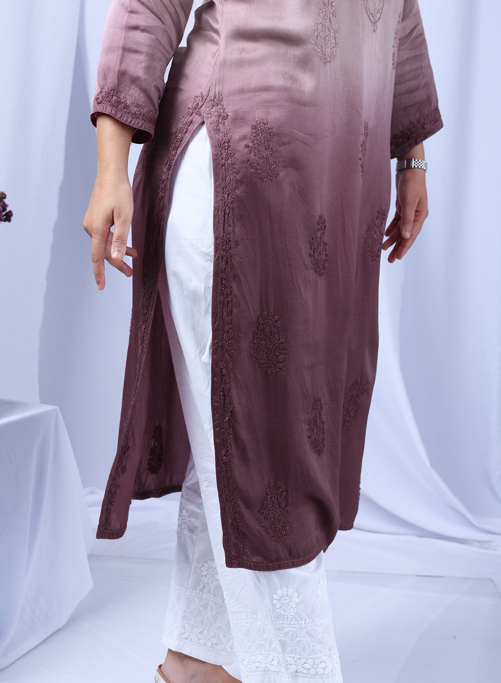Meera Mauve - Bahaar Satin Chikankari Ombre Kurta