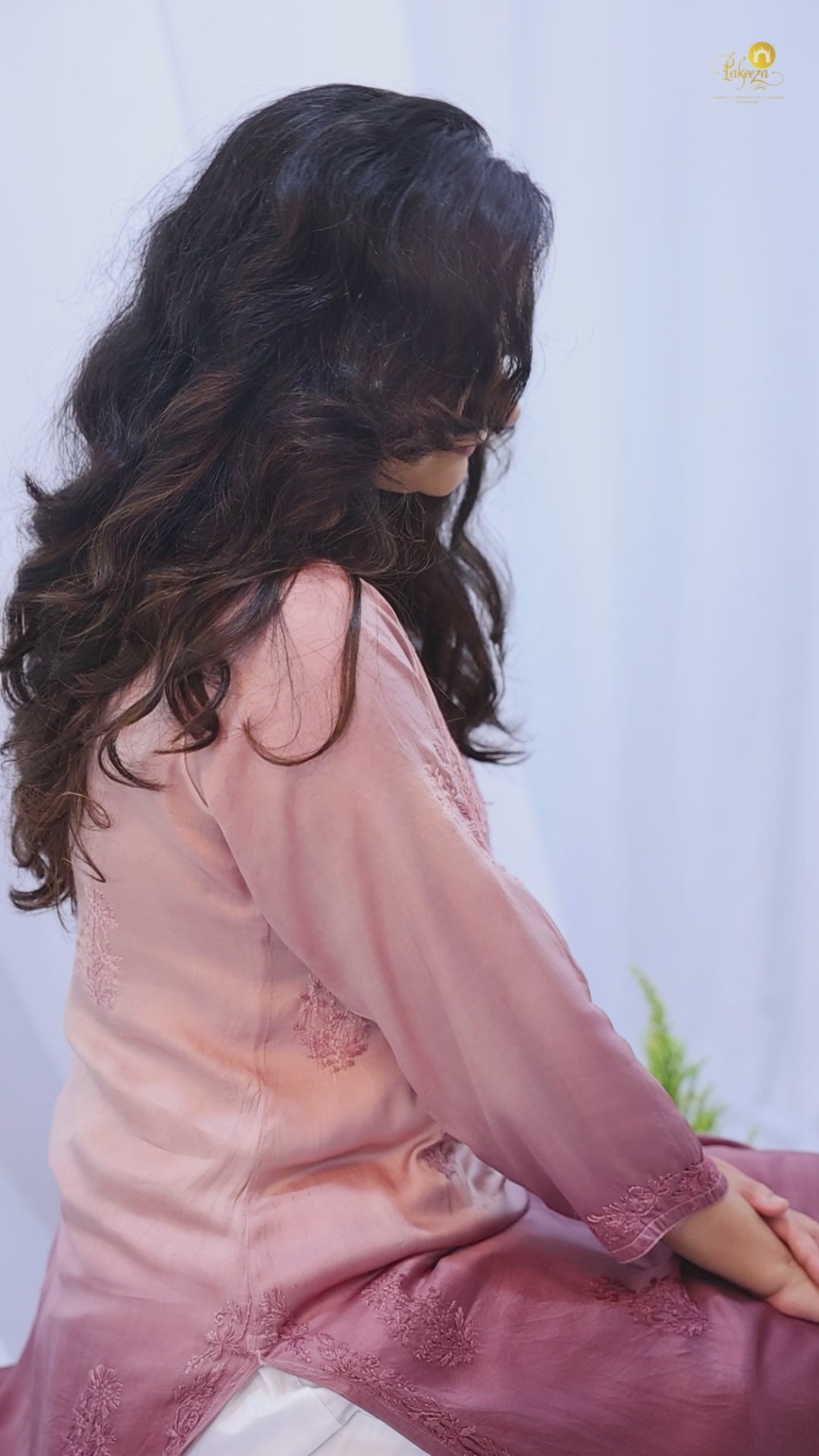 Crafted in rich, fluid satin fabric, Meera flows like poetry in motion, enhanced by a delicate ombre effect that adds depth and visual harmony. The kurta is meticulously adorned with hand-embroidered self-thread chikankari, bringing out the beauty of tradition with a modern, minimalist elegance.