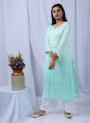 Meera Sea Green - Bahar Satin Chikankari Ombre Kurta