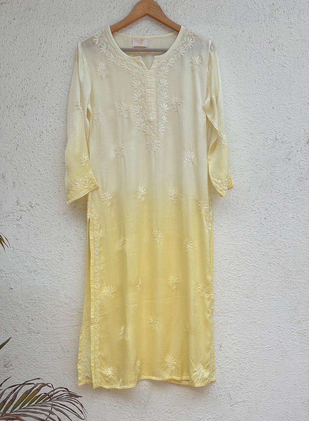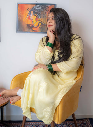 Meera Yellow - Bahaar Satin Chikankari Ombre Kurta
