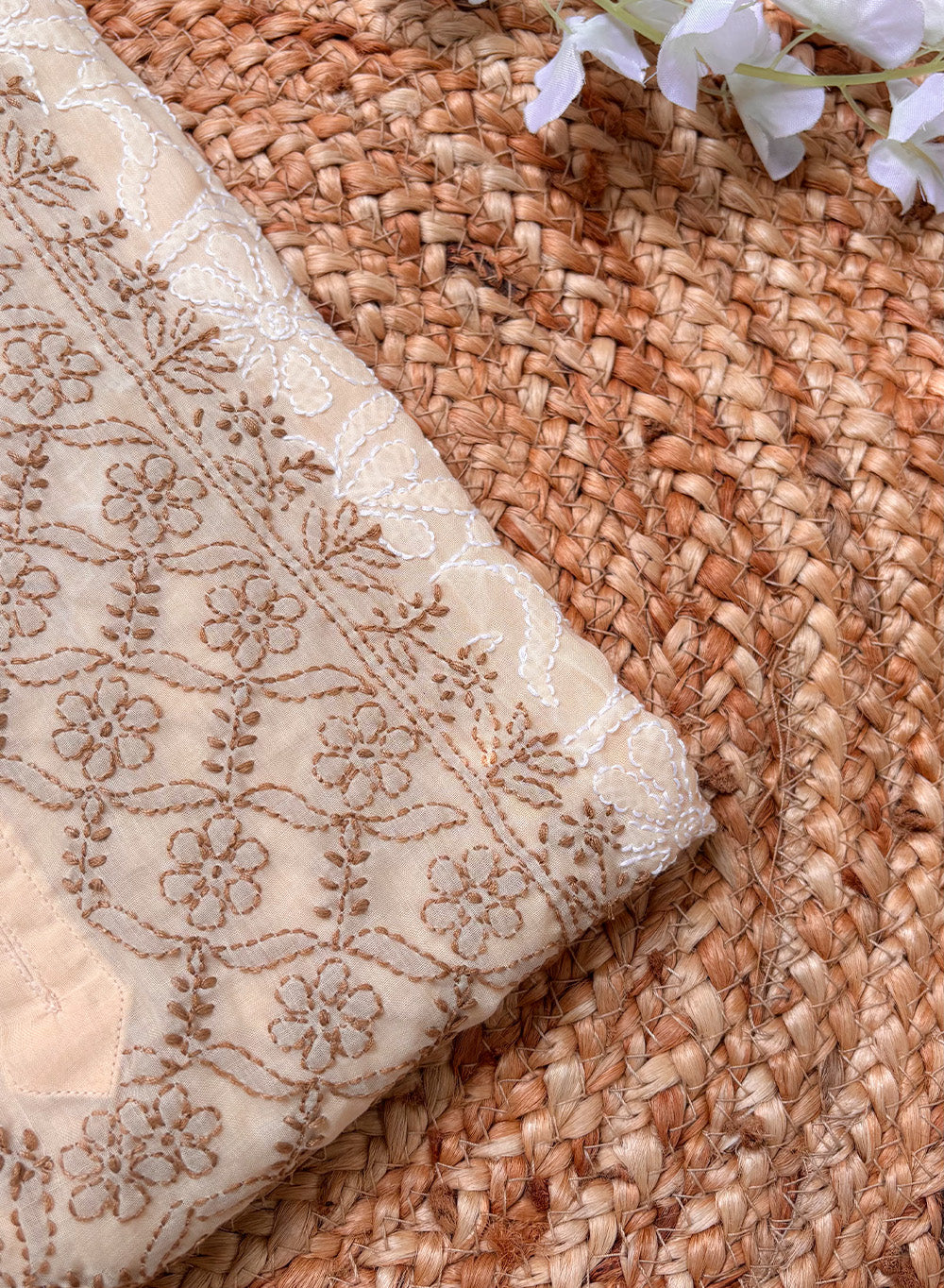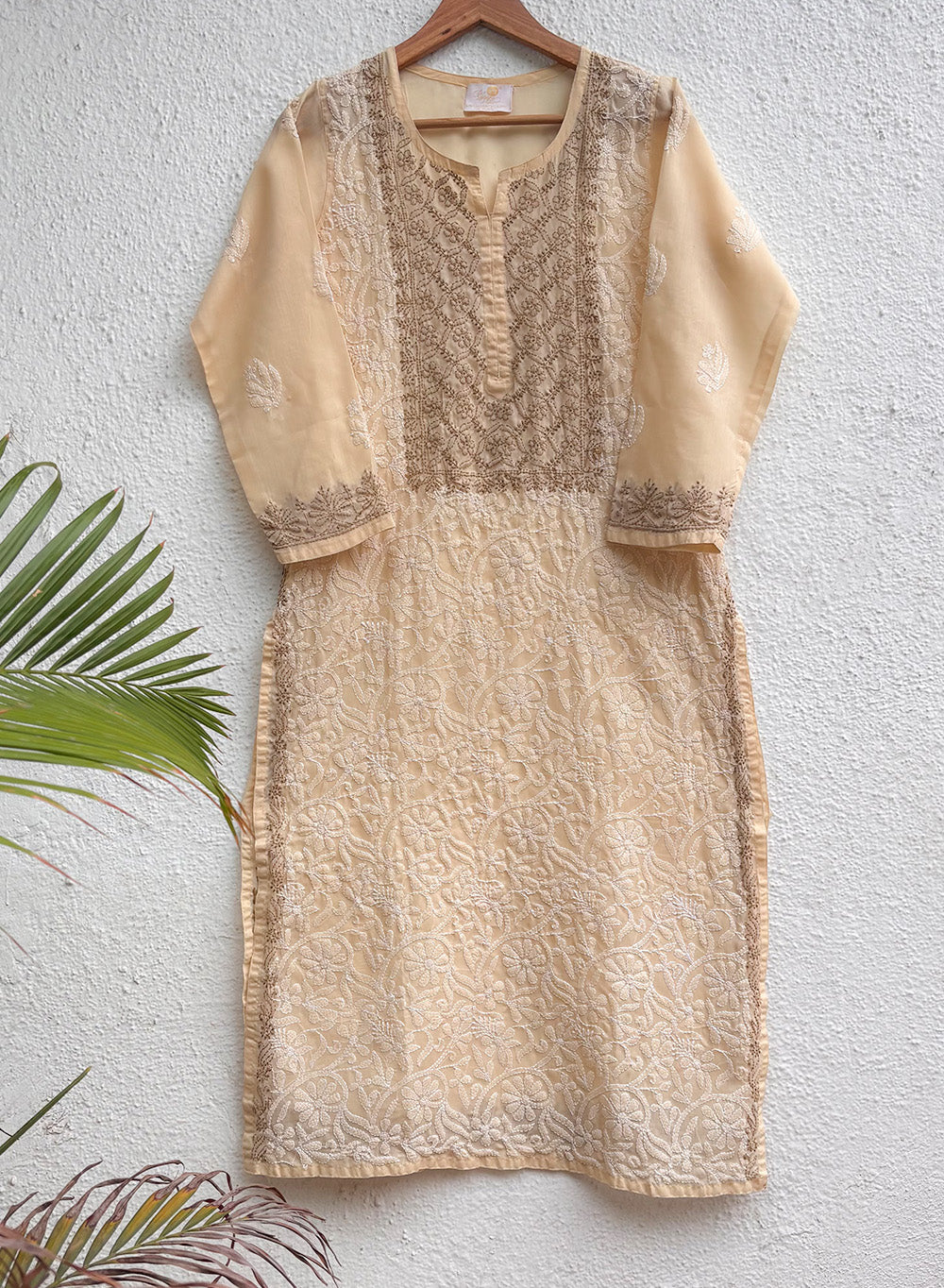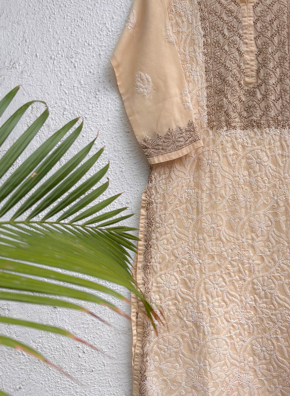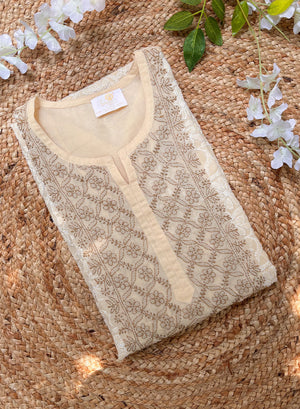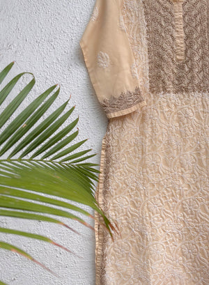 Mehak Beige - Cotton Terry Voile Bahaar Chikankari Kurta