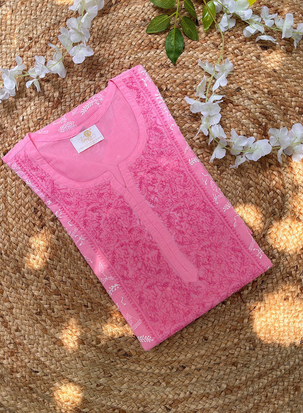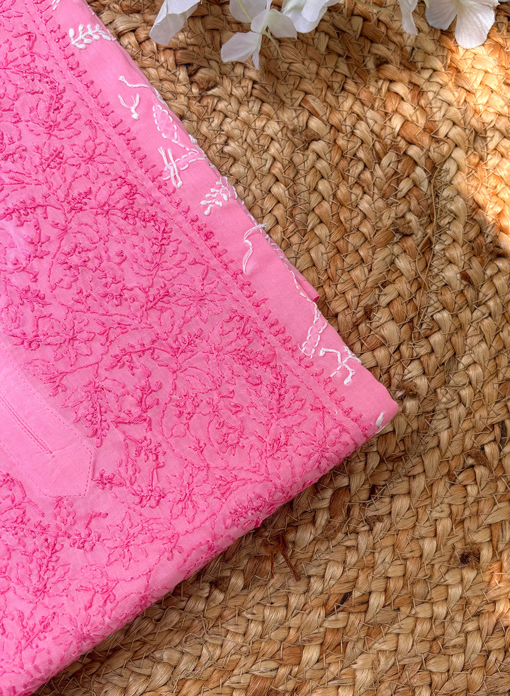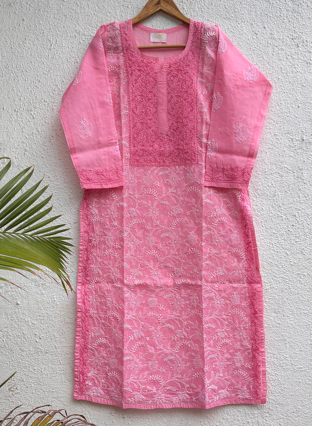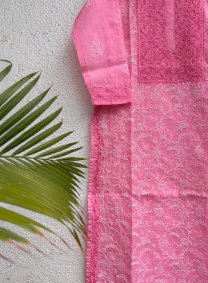 Mehak Pink - Cotton Terry Voile Bahaar Chikankari Kurta