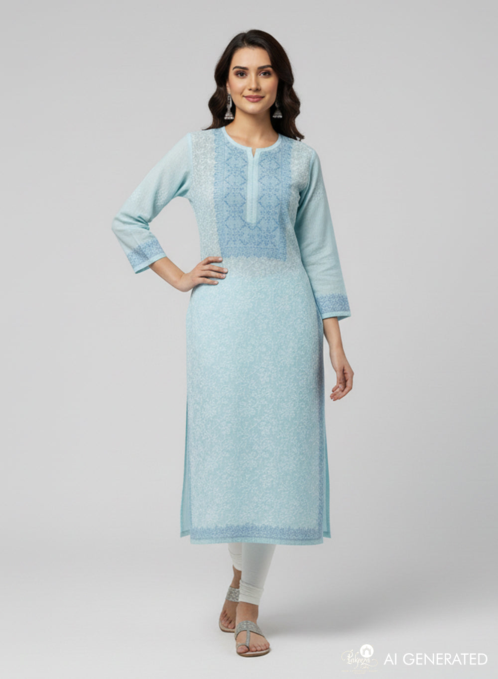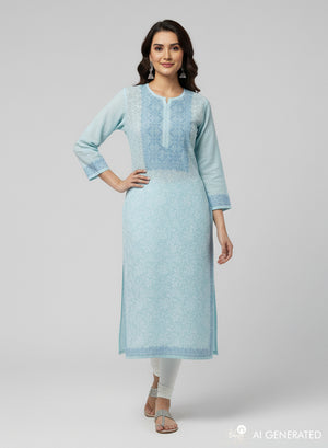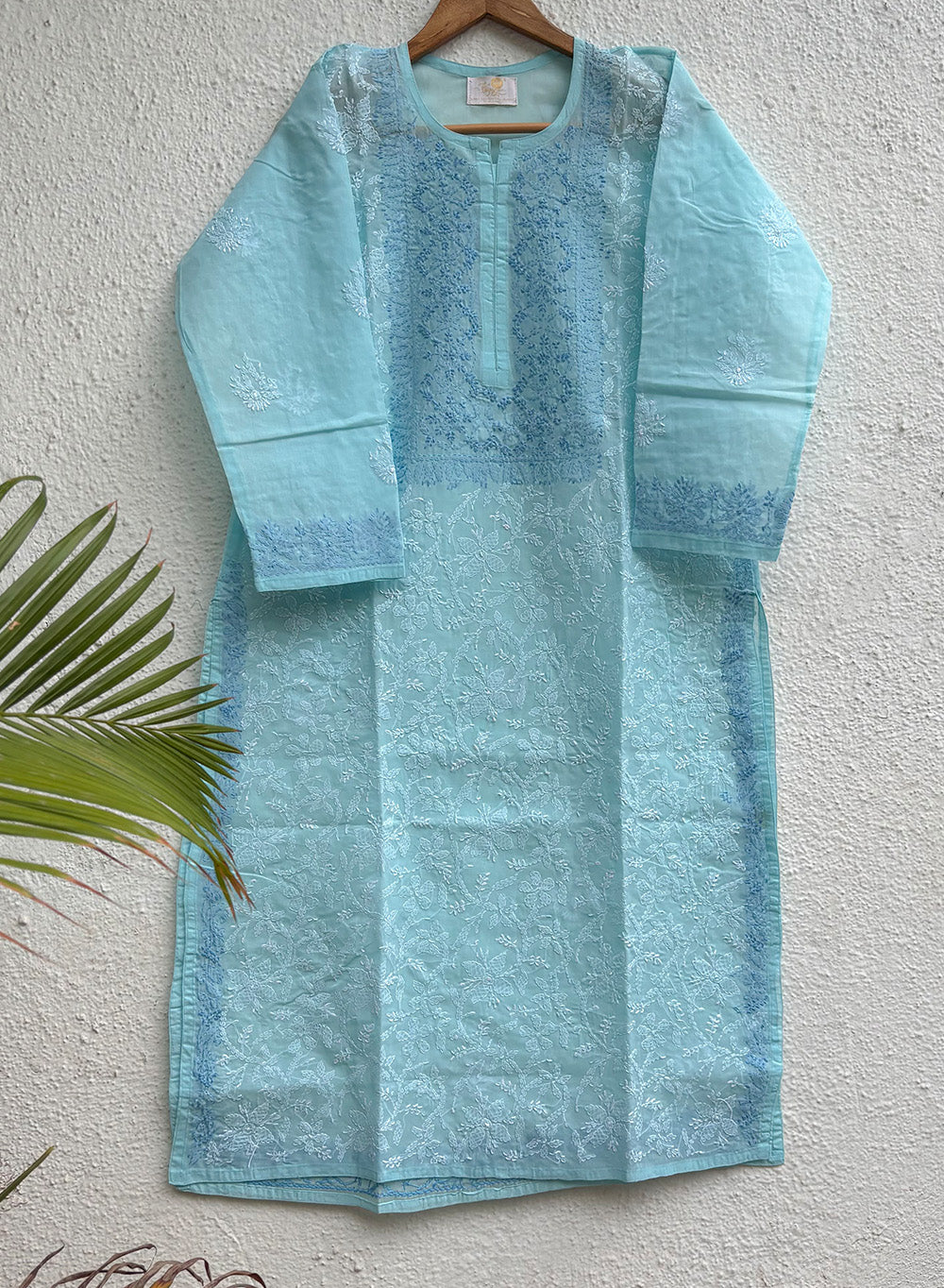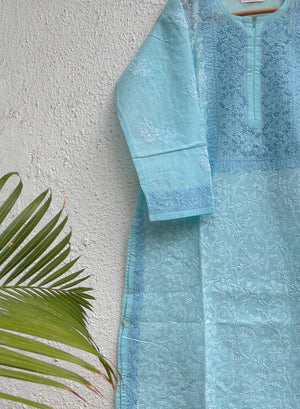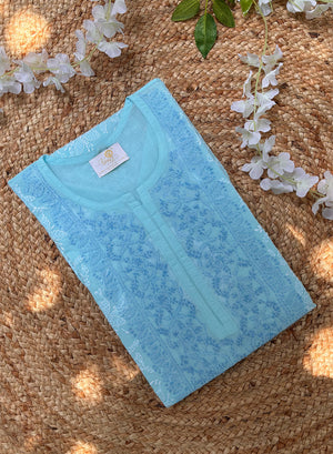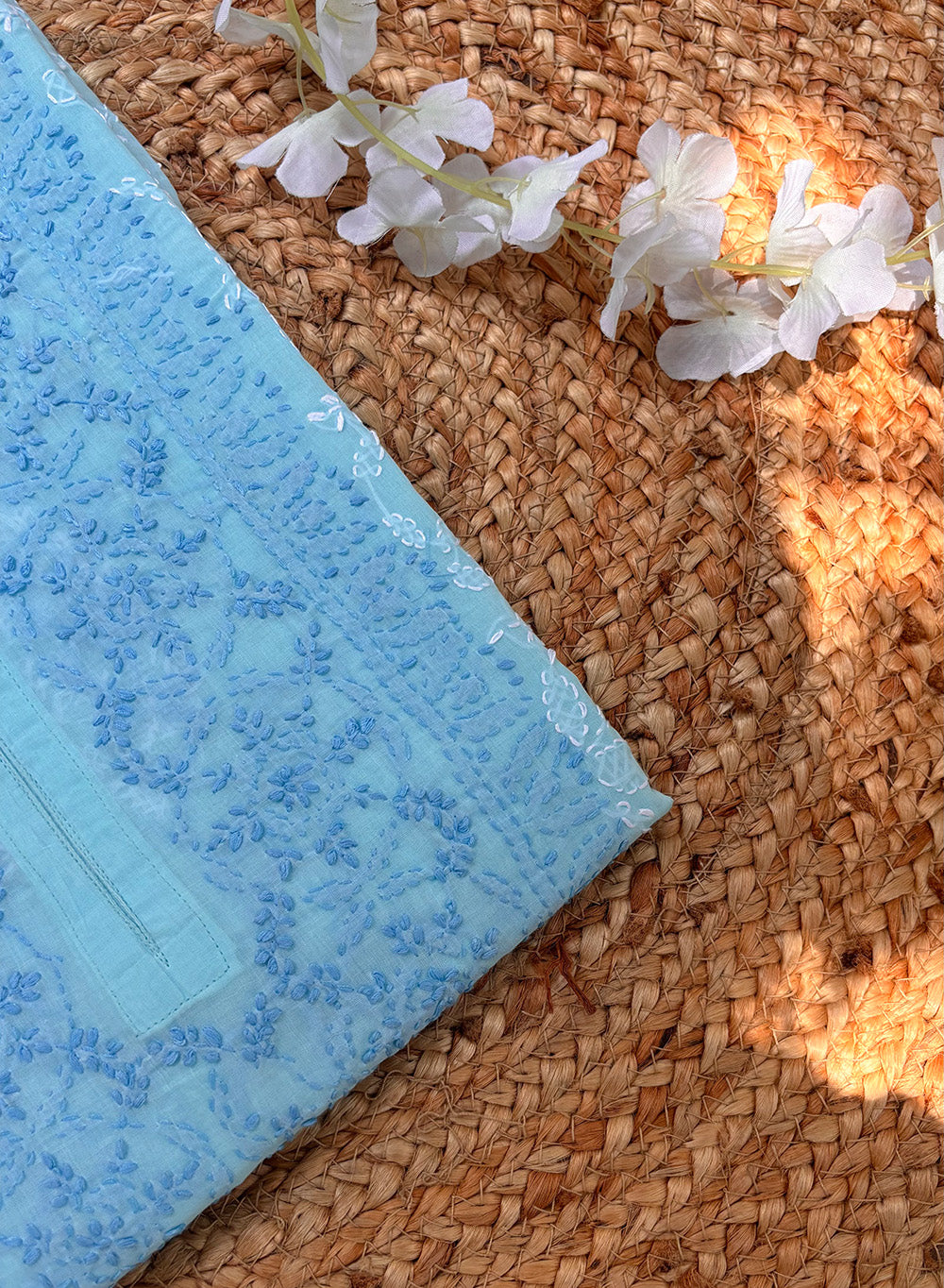 Mehak Sky Blue - Cotton Terry Voile Bahaar Chikankari Kurta