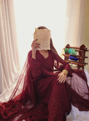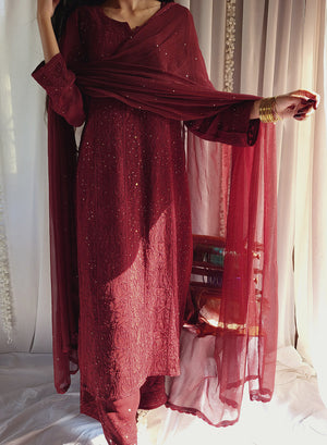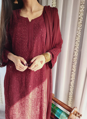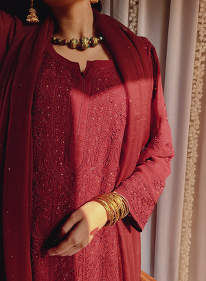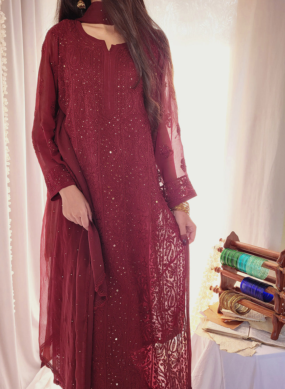 Mehrunisa Maroon- Nargis Full Viscose Chikankari Set