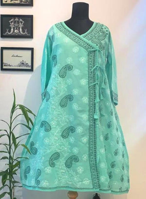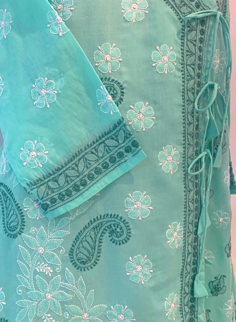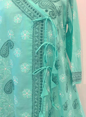 Mint Green - Bahaar Cotton Terry Voile Chikankari Angarakha