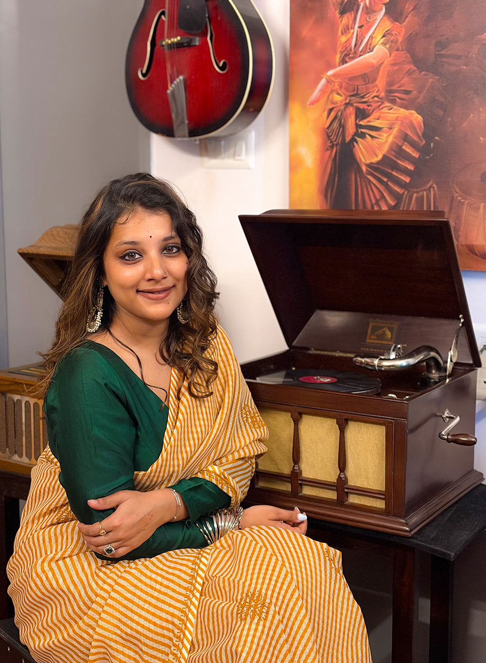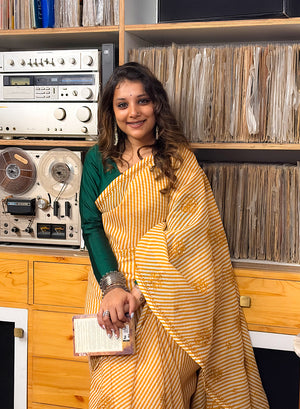 Mustard Lehariya - Kota Aks Cotton Chikankari Saree