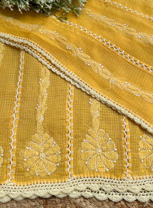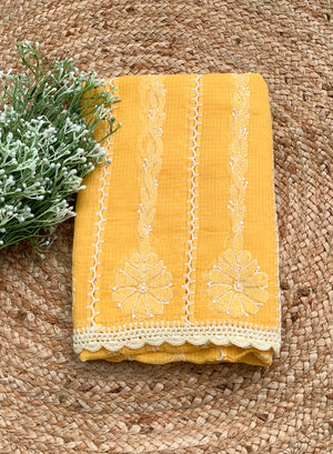 Mango & White Jaali - Nazm Kota Chikankari Cotton Dupatta