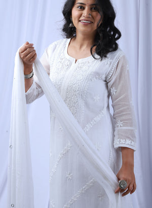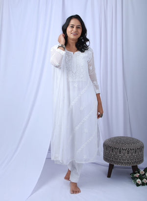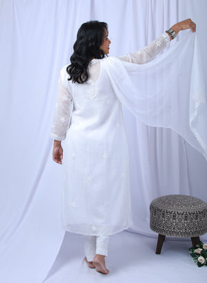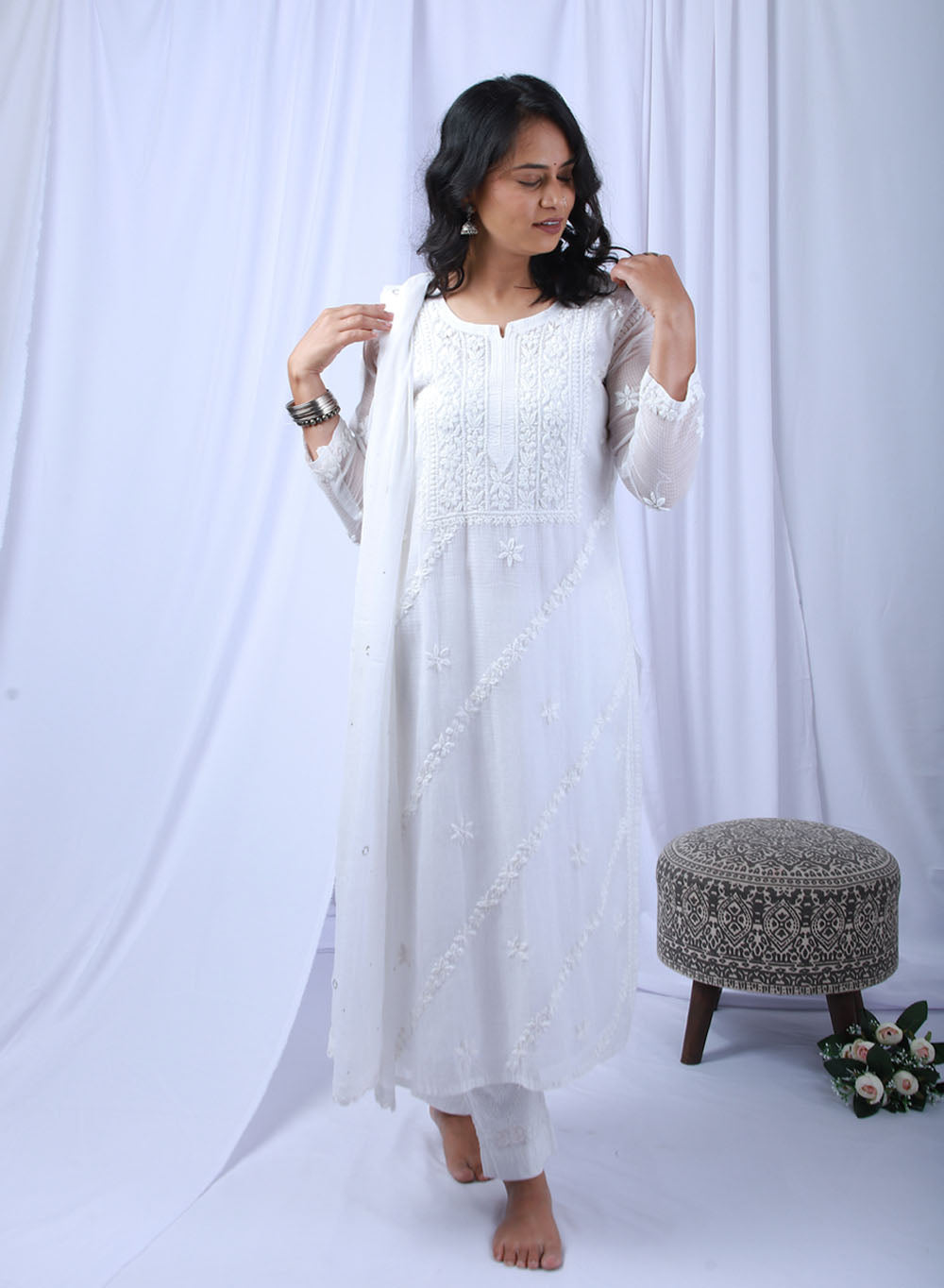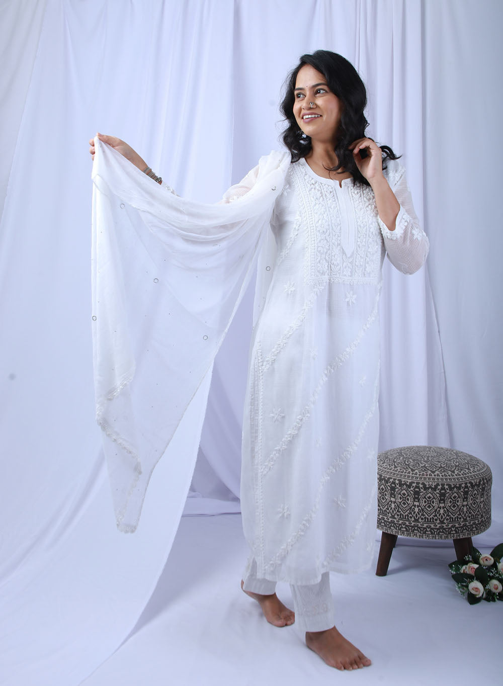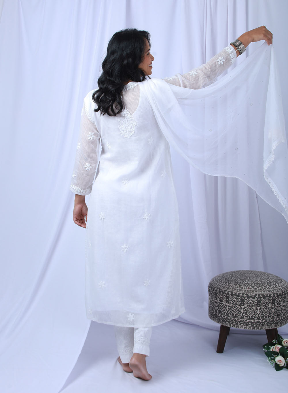Nadia White - Bahaar Kota Doria Chikankari Kurta