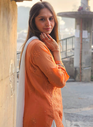 Nazakat Brick - Anjuman Viscose Ombre Front Jaal Chikankari Kurta