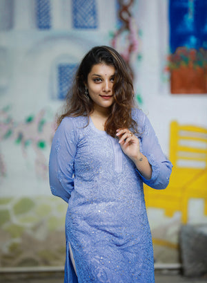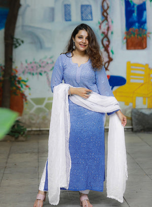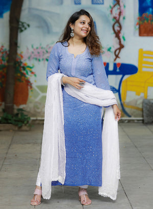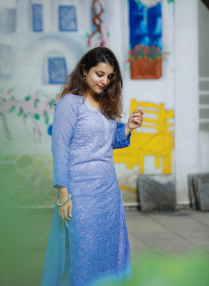 Nazakat Dark Blue - Anjuman Viscose Ombre Full Jaal Chikankari Kurta
