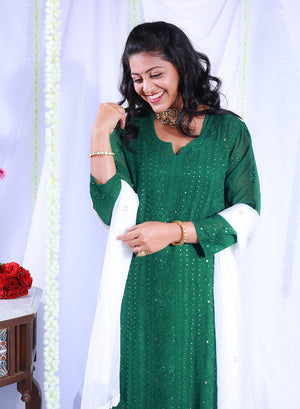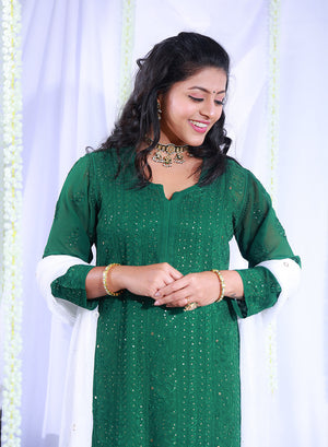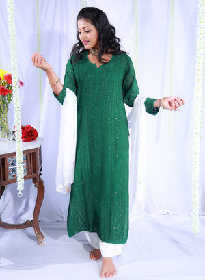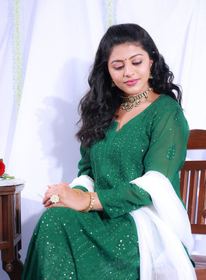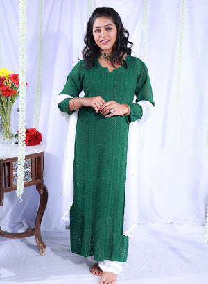 Nazakat Green - Anjuman Viscose Full Jaal Chikankari Kurta