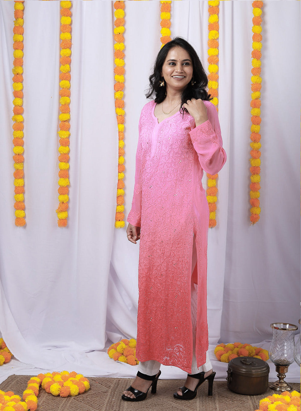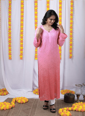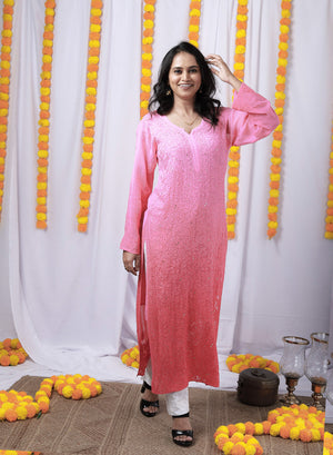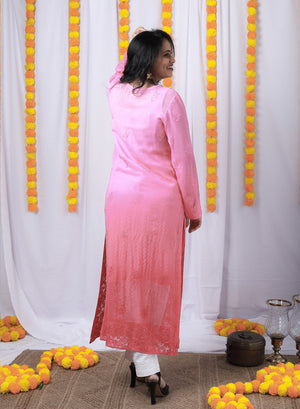 Nazakat Light Pink - Anjuman Viscose Ombre Front Jaal Chikankari Kurta