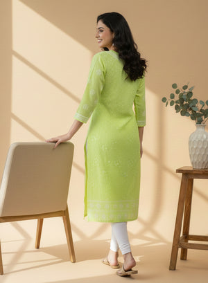 Our beautiful Neon Green - Bahaar Cotton Terry Voile Chikankari Kurta, has been hand embroidered with twisted cotton thread.