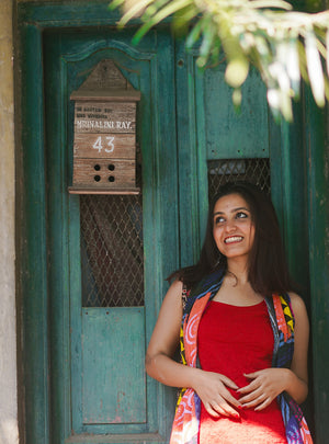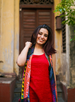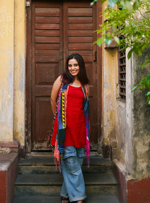 Indulge in handcrafted elegance with our Noori Red Cotton Noodle Strap Top.