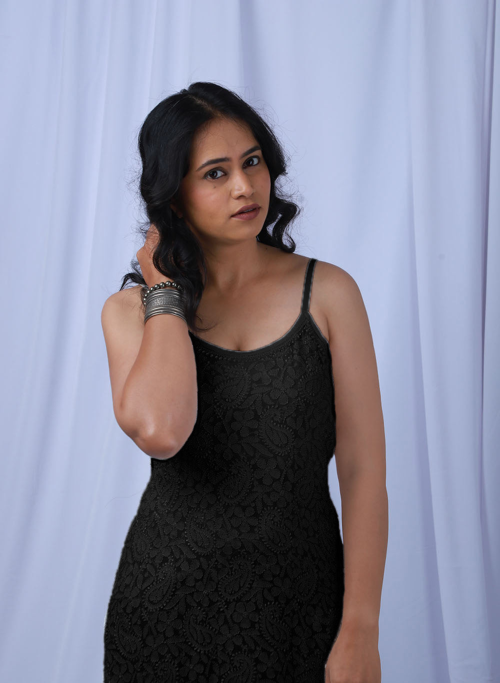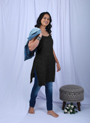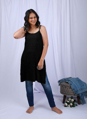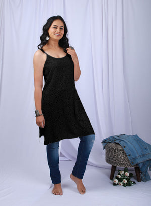 Noori Black - Bahaar Viscose Noodle Strap Chikankari Kurta