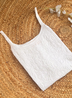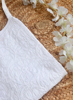 Indulge in handcrafted elegance with our Noori White Cotton Noodle Strap Top.