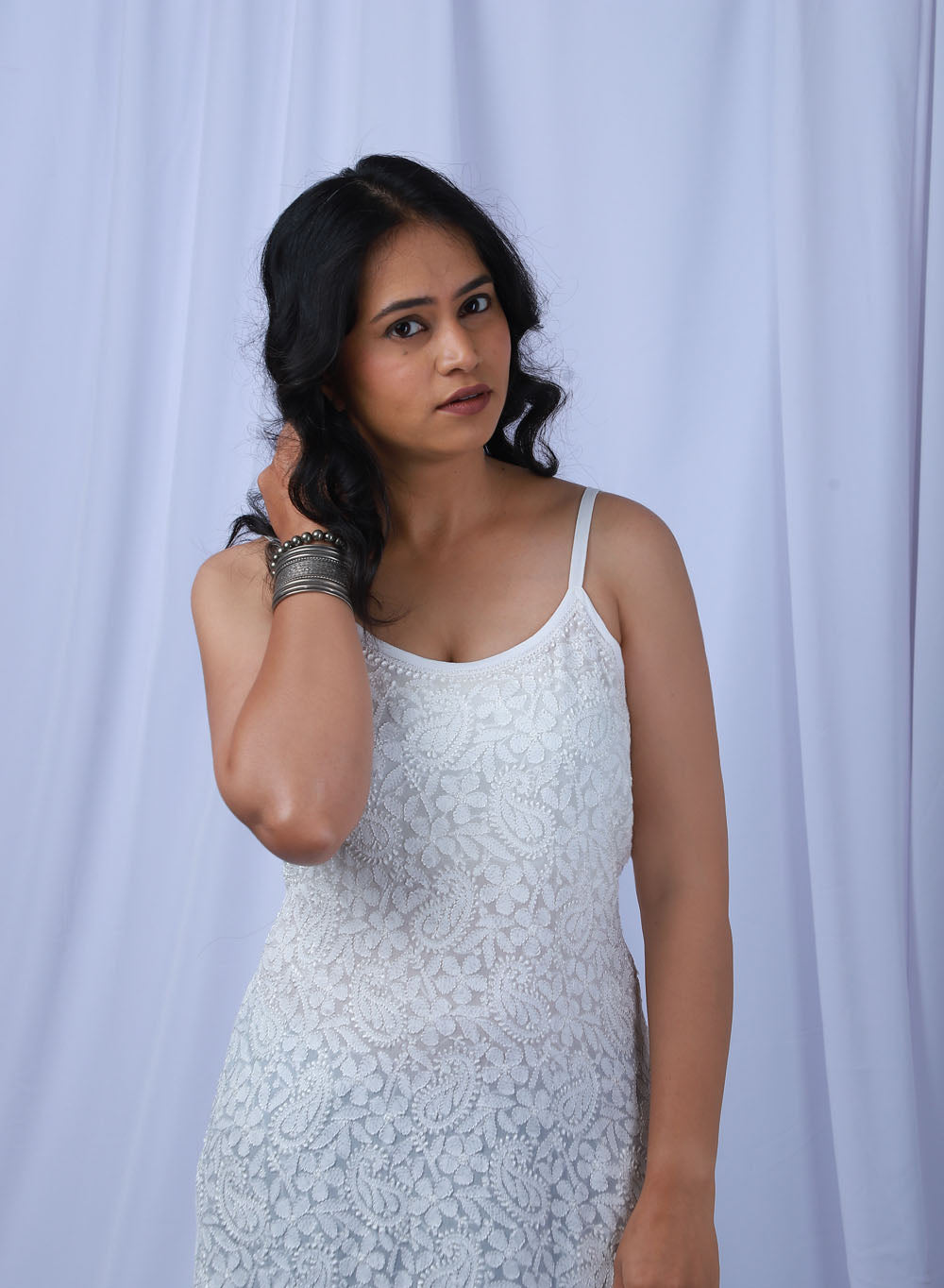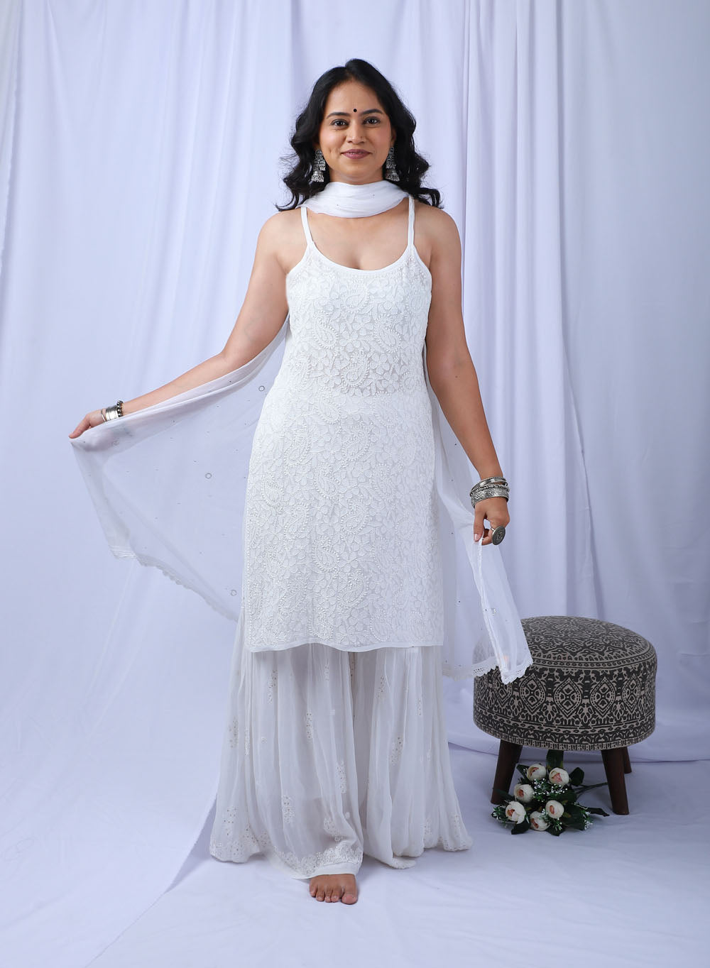 Noori White - Bahaar Viscose Noodle Strap Chikankari Kurta