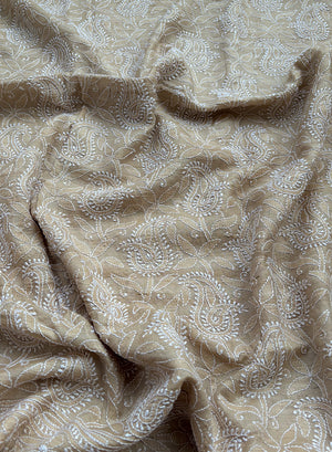 Our Beige - Dhoop Kinaray Tussar Silk Chikankari Kurta Fabric, has hand embroidered motifs, with white twisted cotton thread.