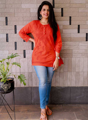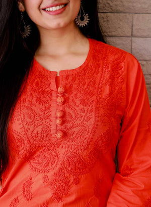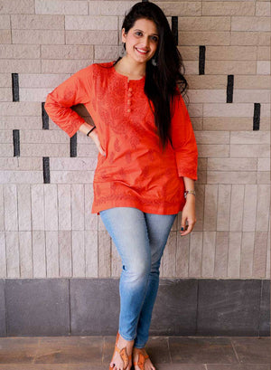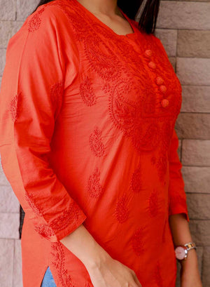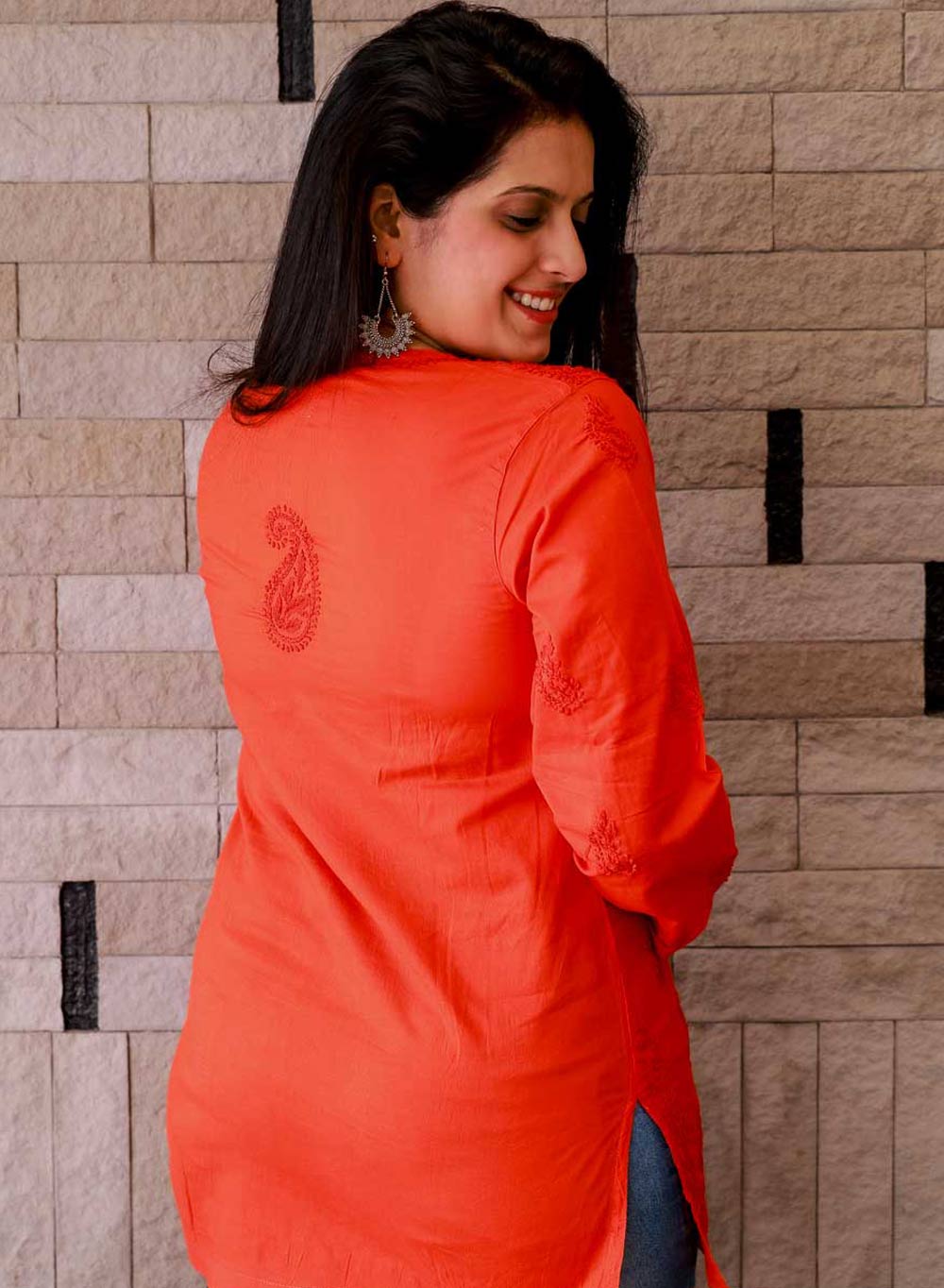 Orange Buttons - Gulshan Cotton Chikankari Short Top