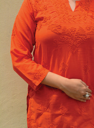 Orange Checks - Gulshan Cotton Chikankari Short Top