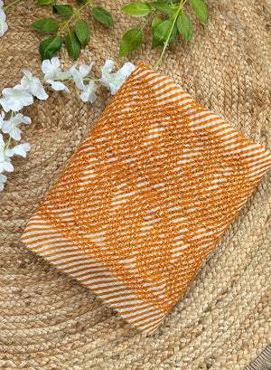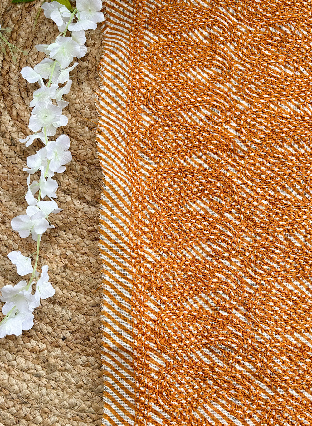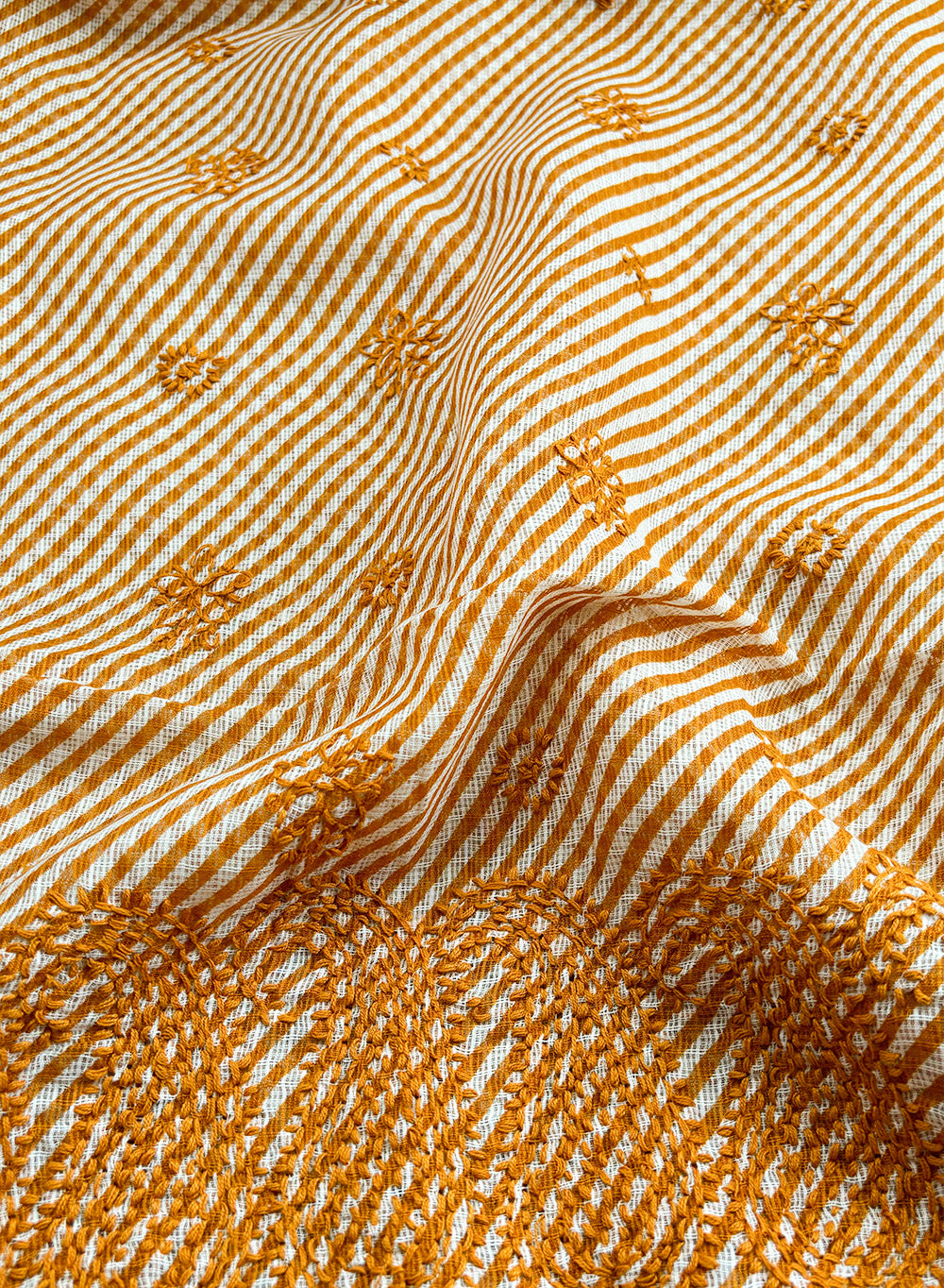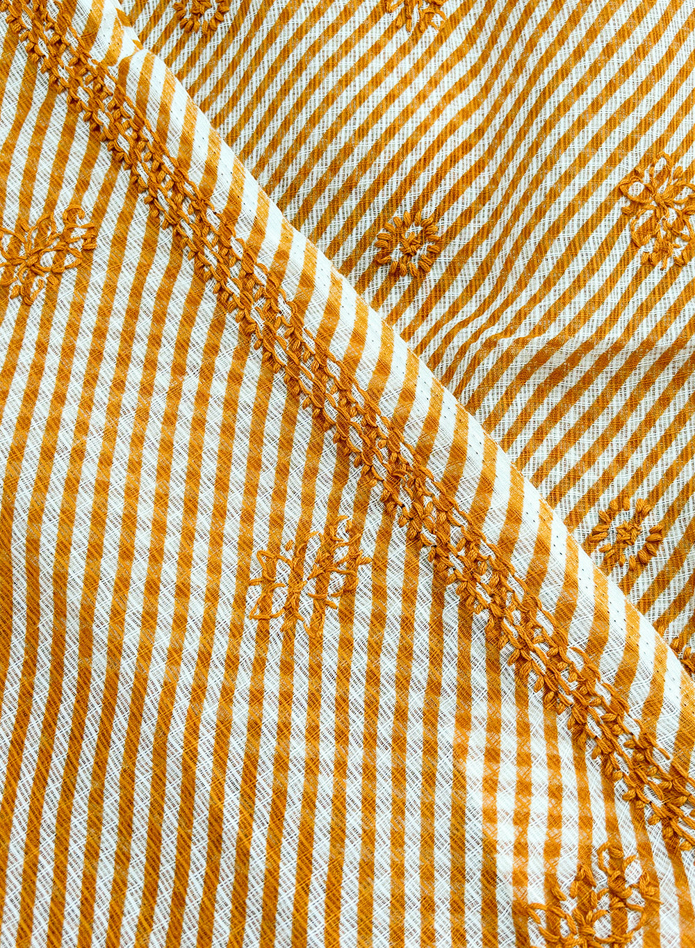 Our Mustard Lehariya Kota Cotton Kurta Fabric, has hand embroidered motifs, with self thread twisted cotton thread.