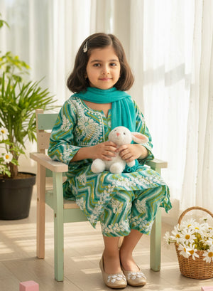Pankhudi - Green Mul Cotton Chikankari Nanhe Farishtey Kidswear Set