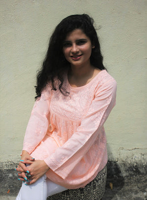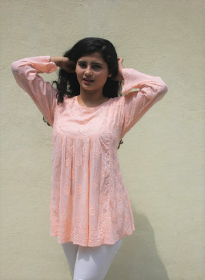 Peach - Resham Thread Gulshan Chikankari Short Top