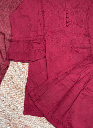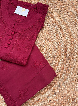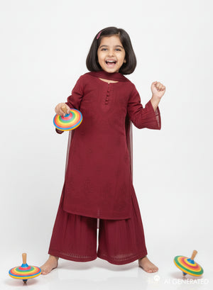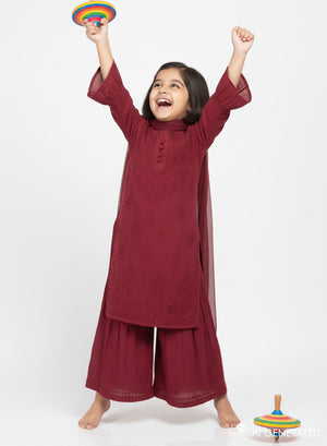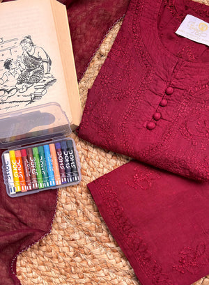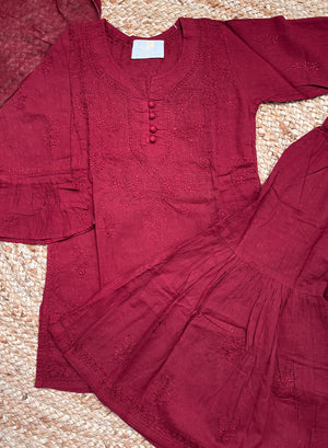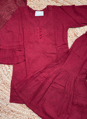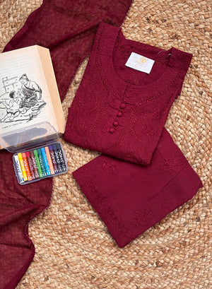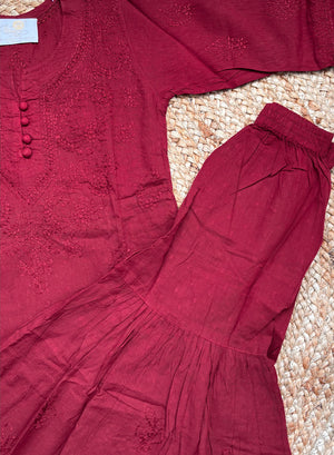 Pihu Maroon - Dobby Cotton Chikankari Kidswear Set