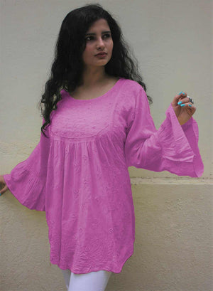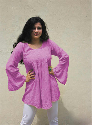 Pink Bell Sleeves - Pure Cotton Gulshan Short Top